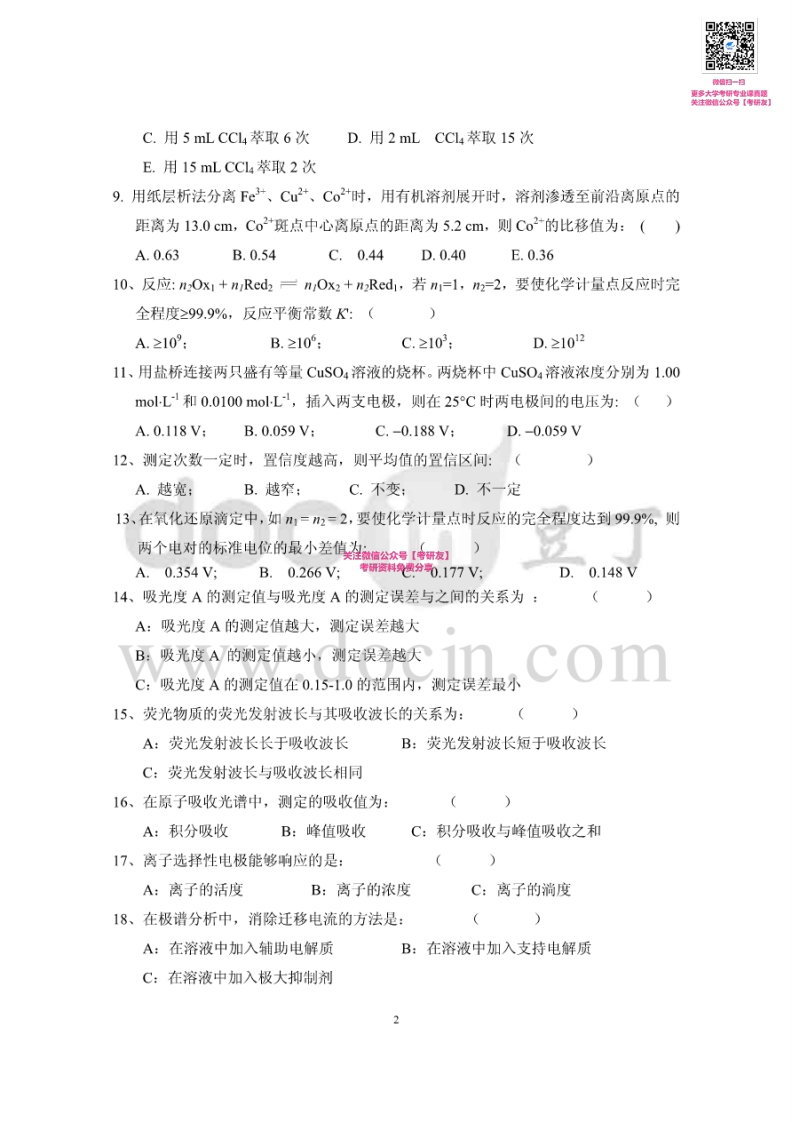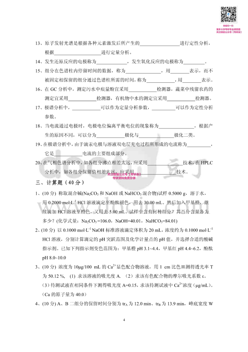 安徽工业大学721分析化学(含仪器分析)2008、2014-2015考研真题汇编猴哥6个月前发布关注私信1.25MB14页07224安徽工业大学721分析化学(含仪器分析)2008、2014-2015考研真题汇编此内容为免费资源,请登录后查看¥0 登录查看免费资源 第1页 / 共14页 第2页 / 共14页 第3页 / 共14页 第4页 / 共14页 第5页 / 共14页 该文档为免费文档,您可直接下载完整版进行阅读 © 版权声明文章版权归作者所有,未经允许请勿转载。THE END考研专业课 喜欢就支持一下吧点赞24赞赏 分享QQ空间微博QQ好友海报分享复制链接收藏