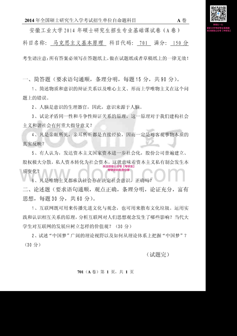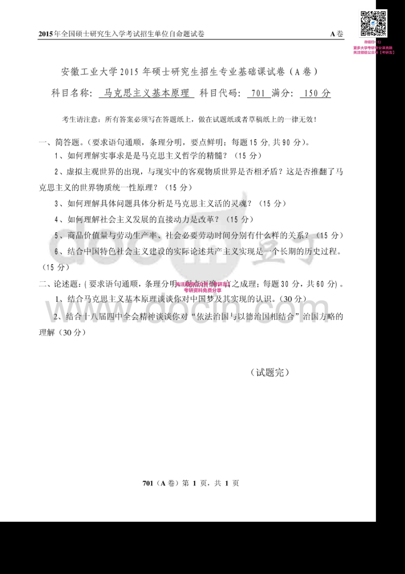 安徽工业大学701马克思主义基本原理2008、2014-2015考研真题汇编猴哥6个月前发布关注私信0.32MB4页07959安徽工业大学701马克思主义基本原理2008、2014-2015考研真题汇编此内容为免费资源,请登录后查看¥0 登录查看免费资源 第1页 / 共4页 第2页 / 共4页 第3页 / 共4页 第4页 / 共4页 已完成全部阅读,共4页 © 版权声明文章版权归作者所有,未经允许请勿转载。THE END《安徽工业大学》(701)马克思主义基本原理考研资料考研专业课 喜欢就支持一下吧点赞59赞赏 分享QQ空间微博QQ好友海报分享复制链接收藏