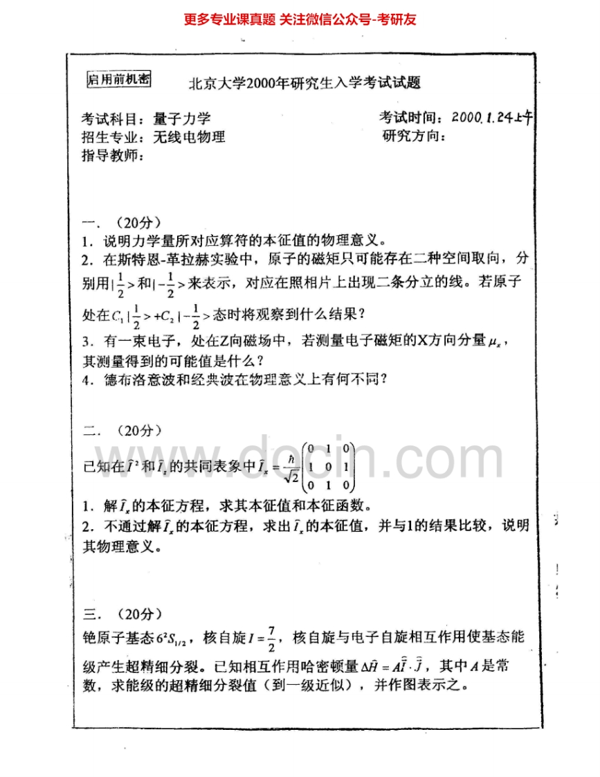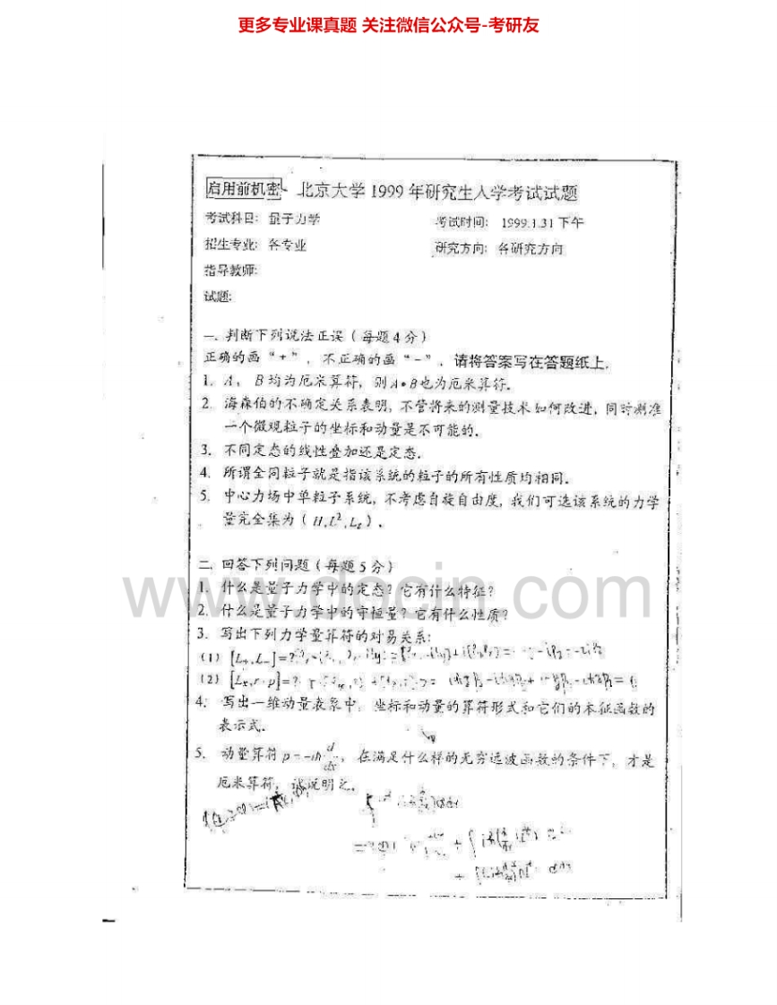 北京大学612量子力学1998-2001、2003、2006-2007考研真题猴哥6个月前发布关注私信3.11MB11页08218北京大学612量子力学1998-2001、2003、2006-2007考研真题此内容为免费资源,请登录后查看¥0 登录查看免费资源 第1页 / 共11页 第2页 / 共11页 第3页 / 共11页 第4页 / 共11页 第5页 / 共11页 该文档为免费文档,您可直接下载完整版进行阅读 © 版权声明文章版权归作者所有,未经允许请勿转载。THE END《北京大学》(612)地理学综合考研资料考研专业课 喜欢就支持一下吧点赞18赞赏 分享QQ空间微博QQ好友海报分享复制链接收藏
