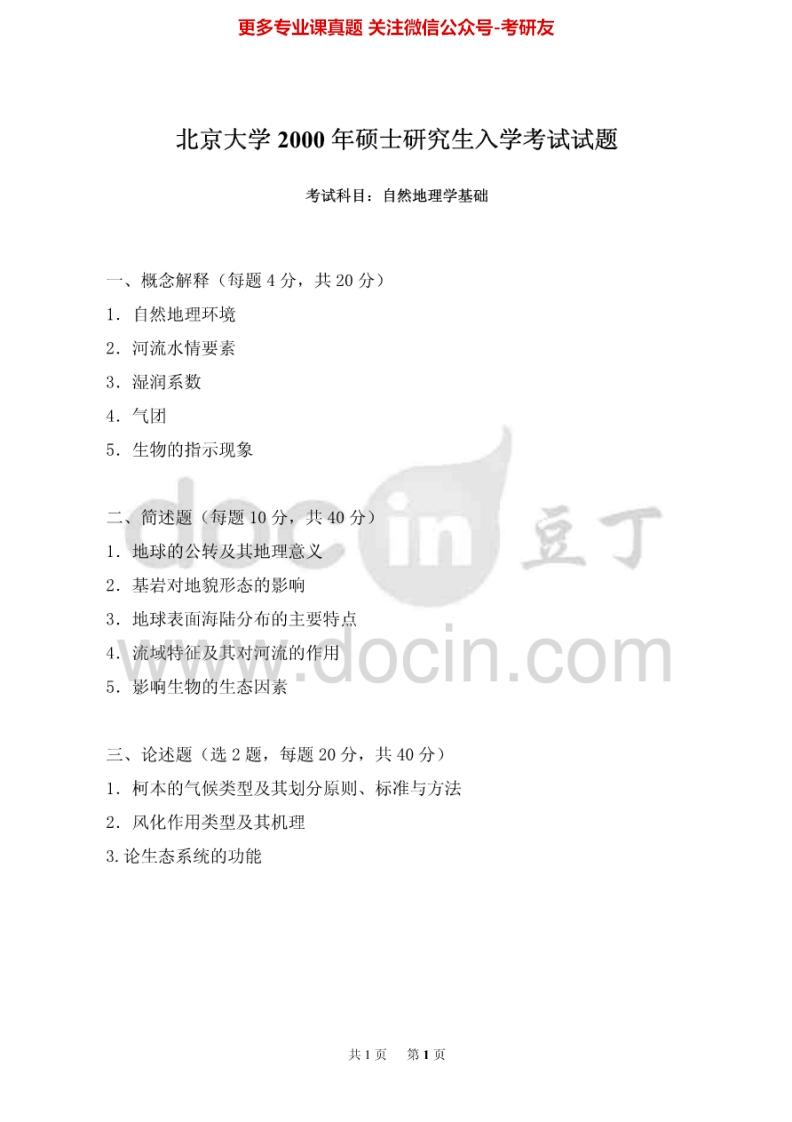 北京大学915自然地理学1997-2000,(回忆版)2009考研真题汇编猴哥6个月前发布关注私信0.26MB5页09524北京大学915自然地理学1997-2000,(回忆版)2009考研真题汇编此内容为免费资源,请登录后查看¥0 登录查看免费资源 第1页 / 共5页 第2页 / 共5页 第3页 / 共5页 第4页 / 共5页 第5页 / 共5页 已完成全部阅读,共5页 © 版权声明文章版权归作者所有,未经允许请勿转载。THE END考研专业课 喜欢就支持一下吧点赞24赞赏 分享QQ空间微博QQ好友海报分享复制链接收藏
