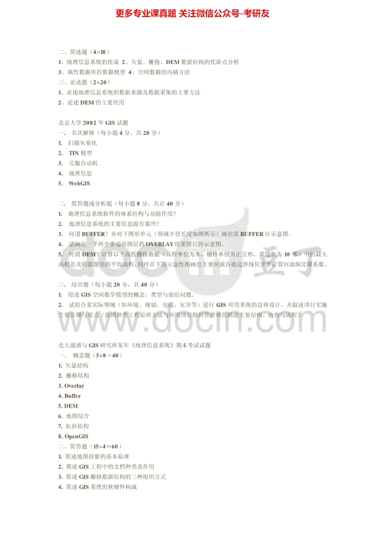 北京大学地理信息系统1998-2003、回忆版2010-2011历年真题考研真题汇编猴哥6个月前发布关注私信0.90MB6页09348北京大学地理信息系统1998-2003、回忆版2010-2011历年真题考研真题汇编此内容为免费资源,请登录后查看¥0 登录查看免费资源 第1页 / 共6页 第2页 / 共6页 第3页 / 共6页 第4页 / 共6页 第5页 / 共6页 该文档为免费文档,您可直接下载完整版进行阅读 © 版权声明文章版权归作者所有,未经允许请勿转载。THE END考研专业课 喜欢就支持一下吧点赞48赞赏 分享QQ空间微博QQ好友海报分享复制链接收藏