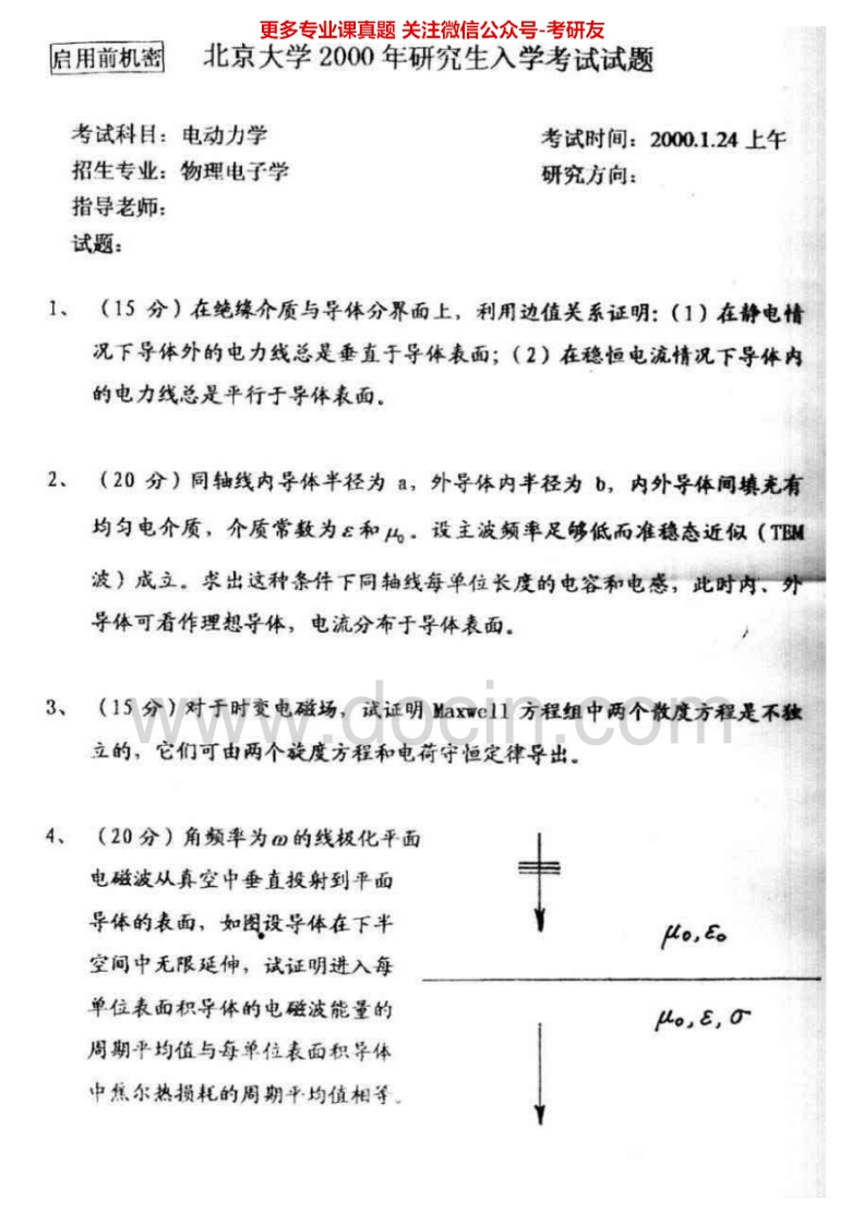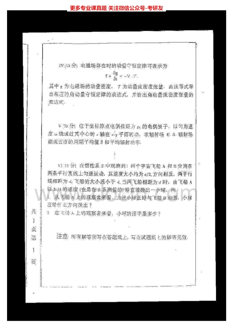 北京大学经典物理(含电动力学、热力学与统计物理)1999-2001、2009、2012历年真题考研真题猴哥6个月前发布关注私信3.39MB15页05653北京大学经典物理(含电动力学、热力学与统计物理)1999-2001、2009、2012历年真题考研真题此内容为免费资源,请登录后查看¥0 登录查看免费资源 第1页 / 共15页 第2页 / 共15页 第3页 / 共15页 第4页 / 共15页 第5页 / 共15页 该文档为免费文档,您可直接下载完整版进行阅读 © 版权声明文章版权归作者所有,未经允许请勿转载。THE END考研专业课 喜欢就支持一下吧点赞53赞赏 分享QQ空间微博QQ好友海报分享复制链接收藏