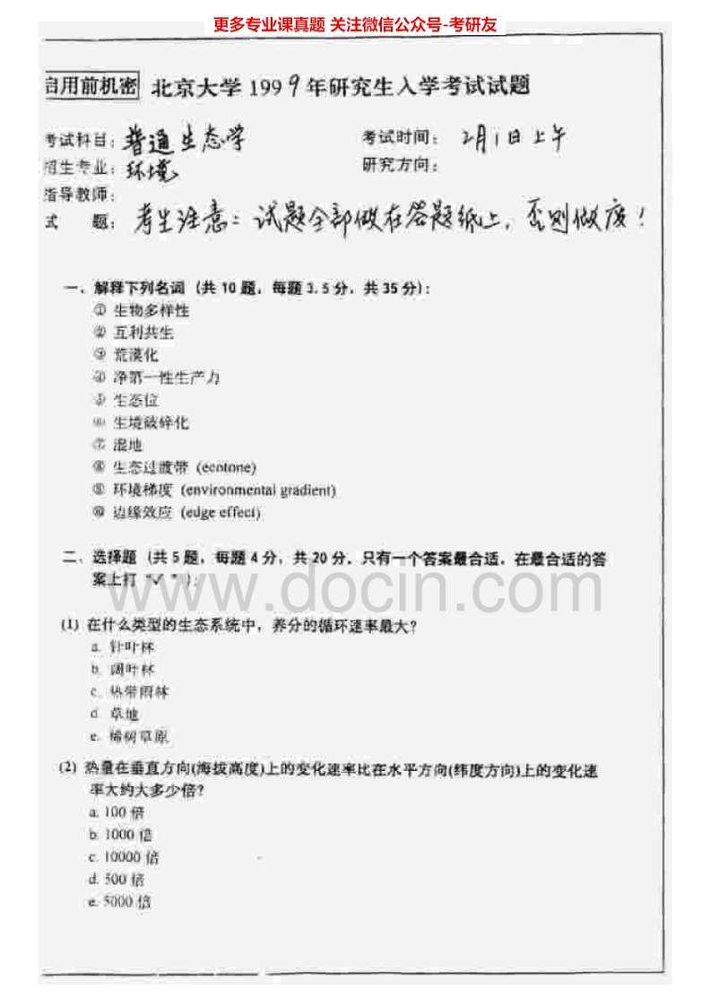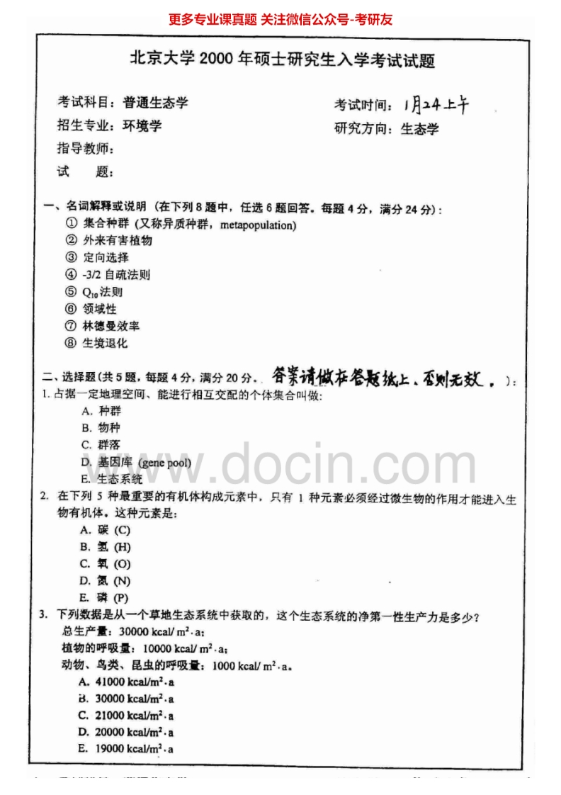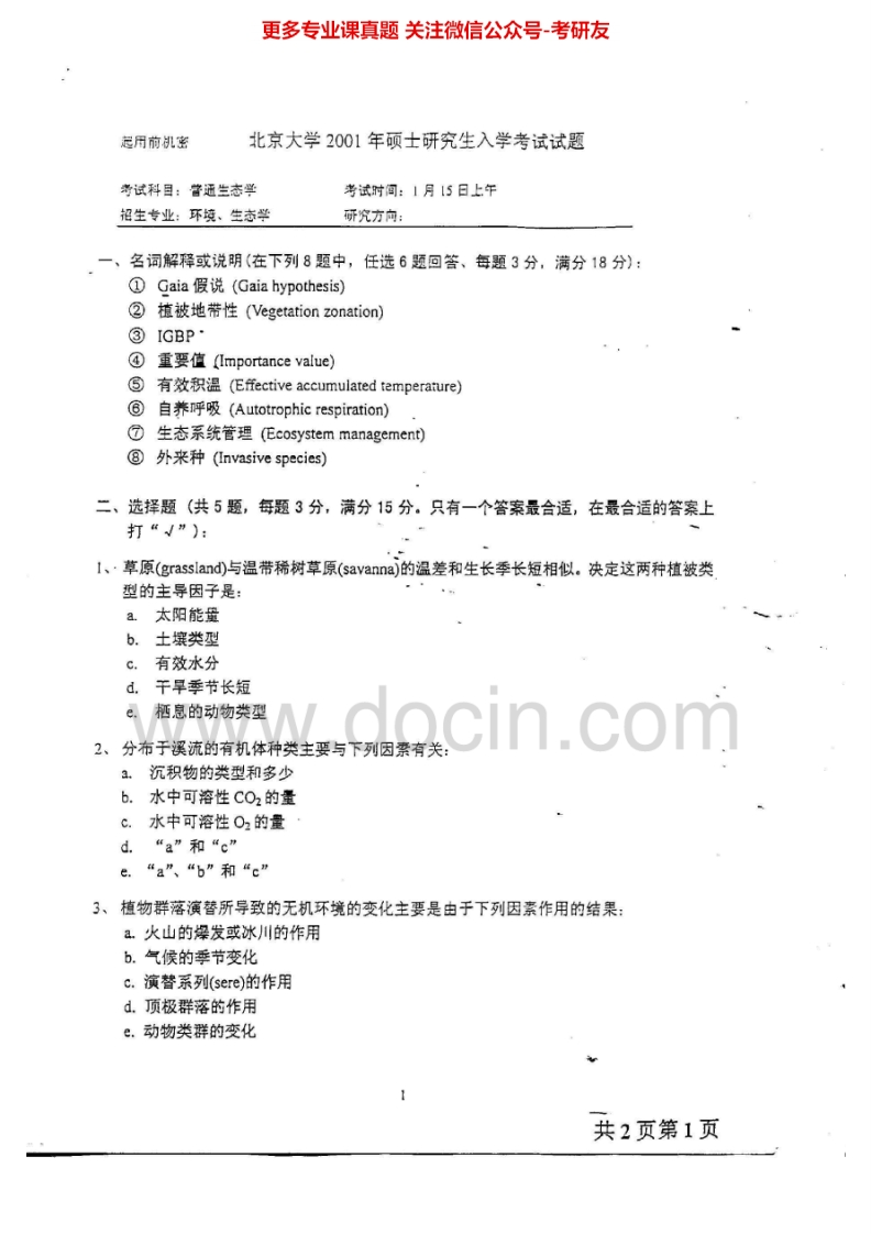 北京大学普通生态学1998-2002、2010-2012历年真题考研真题汇编猴哥6个月前发布关注私信2.46MB12页03122北京大学普通生态学1998-2002、2010-2012历年真题考研真题汇编此内容为免费资源,请登录后查看¥0 登录查看免费资源 第1页 / 共12页 第2页 / 共12页 第3页 / 共12页 第4页 / 共12页 第5页 / 共12页 该文档为免费文档,您可直接下载完整版进行阅读 © 版权声明文章版权归作者所有,未经允许请勿转载。THE END考研专业课 喜欢就支持一下吧点赞22赞赏 分享QQ空间微博QQ好友海报分享复制链接收藏