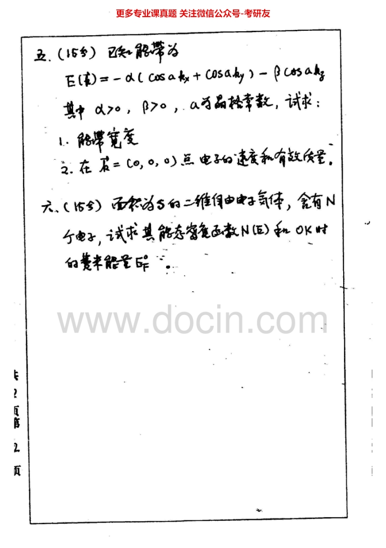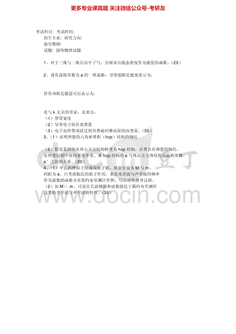 北京大学固体物理1991、1998、2000-2001考研真题汇编-学习资源网 - 分享优质学习资料