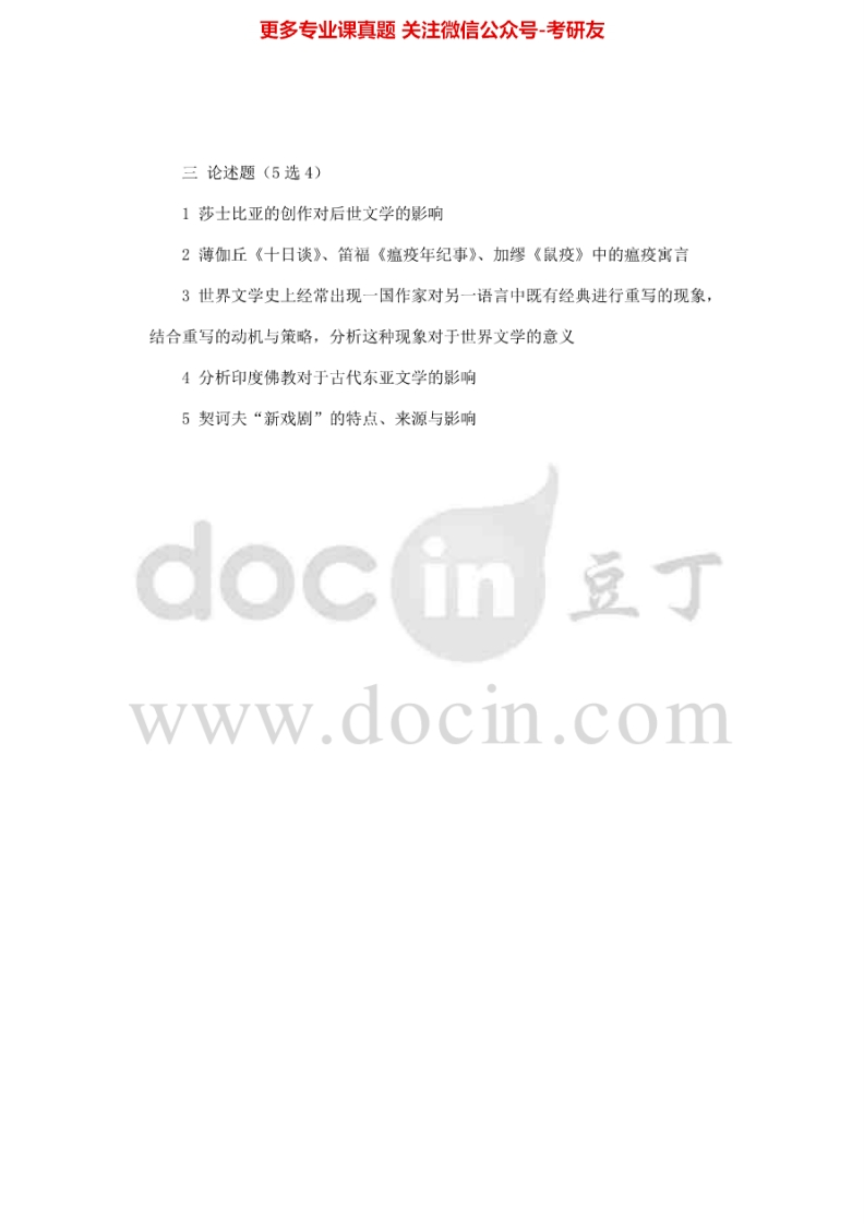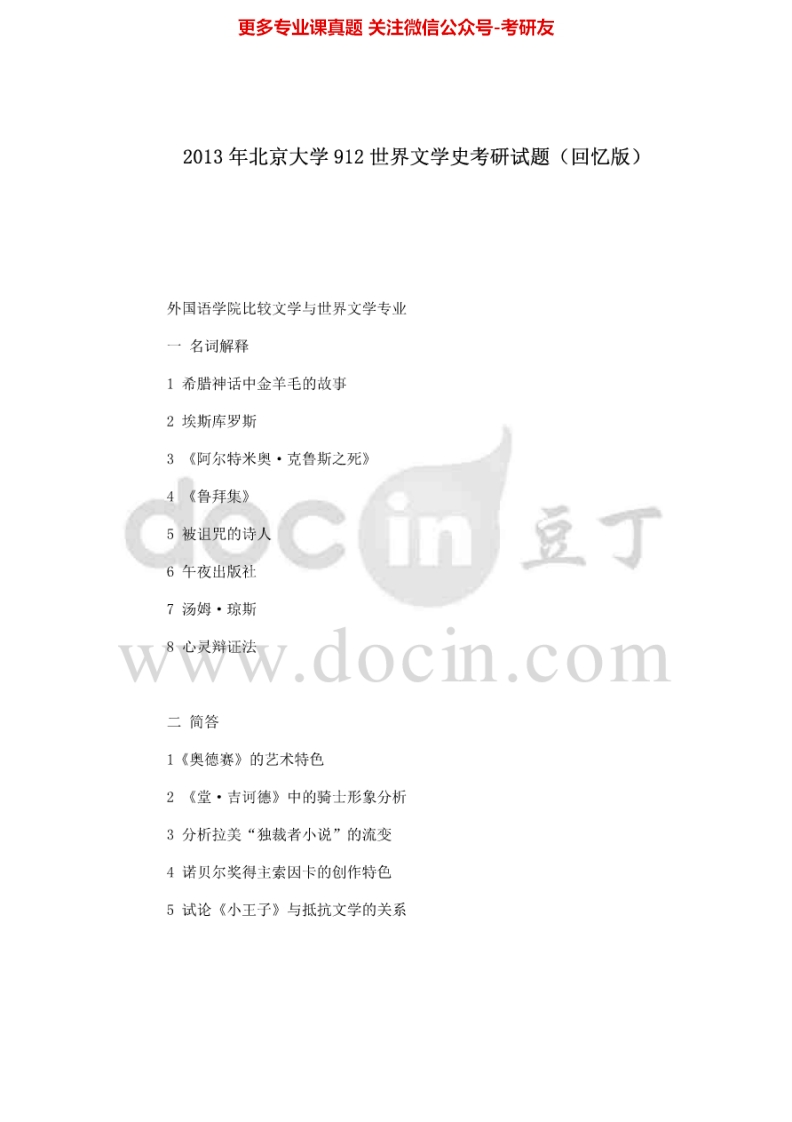 北京大学876世界文学史2012,(回忆版)2013考研真题汇编猴哥6个月前发布关注私信0.16MB4页03160北京大学876世界文学史2012,(回忆版)2013考研真题汇编此内容为免费资源,请登录后查看¥0 登录查看免费资源 第1页 / 共4页 第2页 / 共4页 第3页 / 共4页 第4页 / 共4页 已完成全部阅读,共4页 © 版权声明文章版权归作者所有,未经允许请勿转载。THE END考研专业课 喜欢就支持一下吧点赞60赞赏 分享QQ空间微博QQ好友海报分享复制链接收藏
