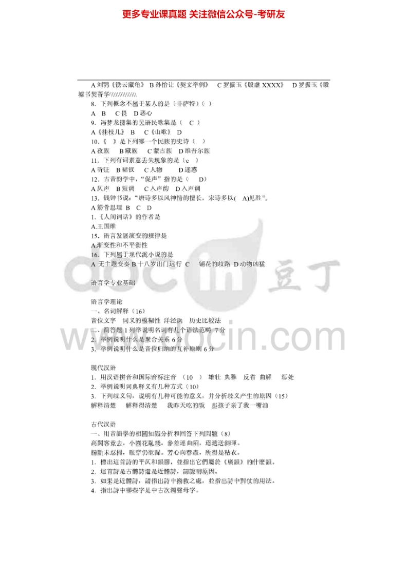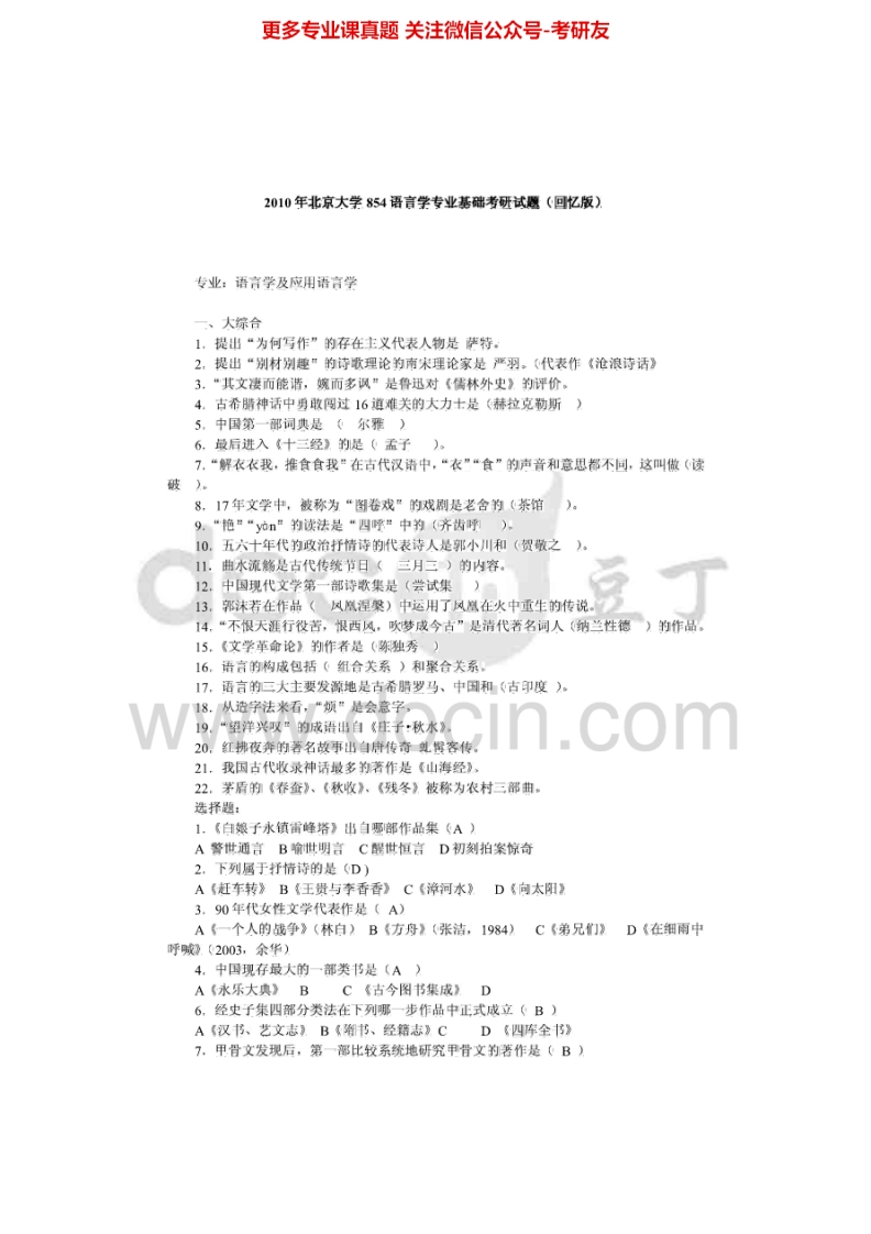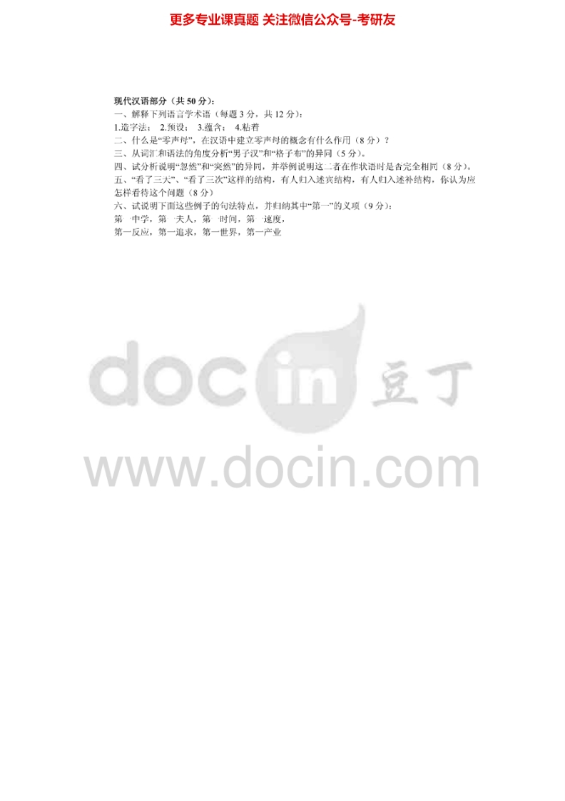 北京大学836语言学基础2000,(回忆)2010-2011考研真题汇编猴哥6个月前发布关注私信0.63MB6页07422北京大学836语言学基础2000,(回忆)2010-2011考研真题汇编此内容为免费资源,请登录后查看¥0 登录查看免费资源 第1页 / 共6页 第2页 / 共6页 第3页 / 共6页 第4页 / 共6页 第5页 / 共6页 该文档为免费文档,您可直接下载完整版进行阅读 © 版权声明文章版权归作者所有,未经允许请勿转载。THE END《北京大学》(836)初等数论考研资料考研专业课 喜欢就支持一下吧点赞22赞赏 分享QQ空间微博QQ好友海报分享复制链接收藏