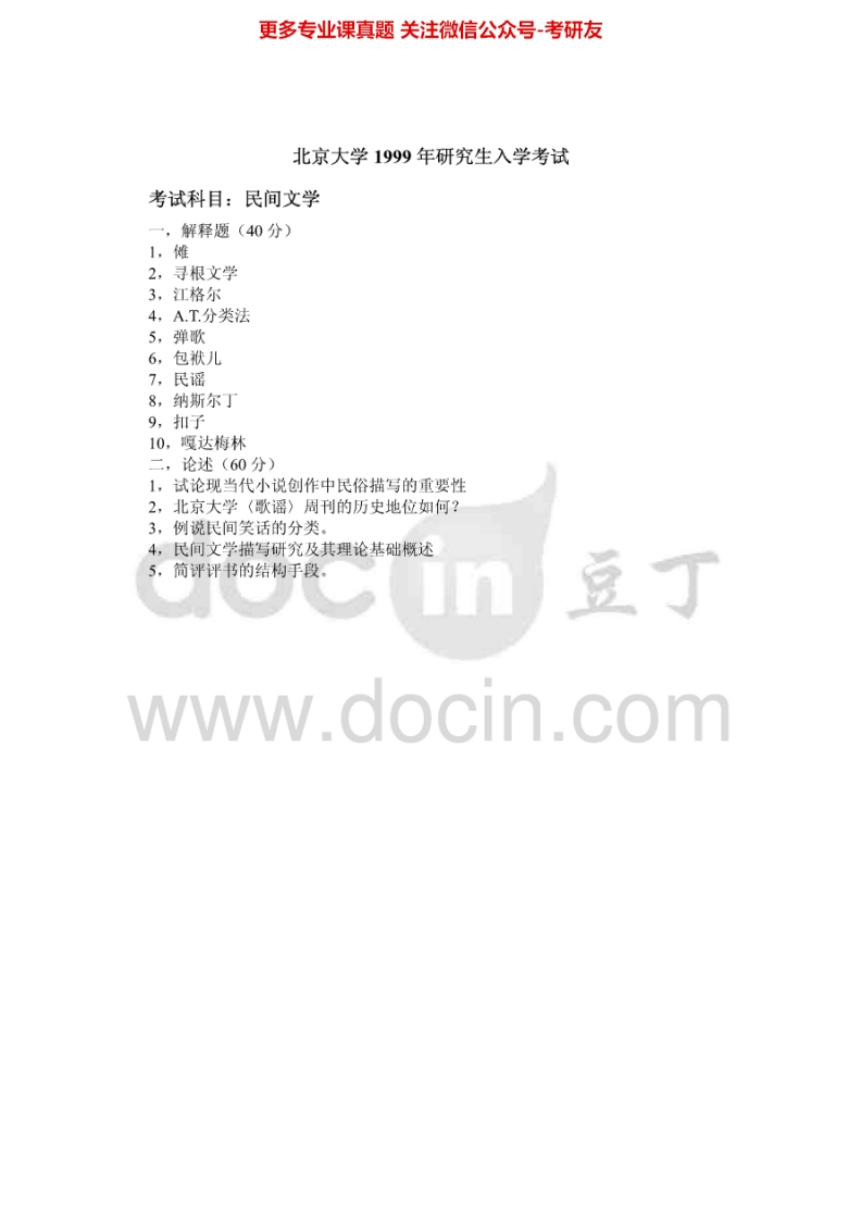 北京大学626中国民间文学1998-1999考研真题汇编猴哥6个月前发布关注私信85.85KB2页03963北京大学626中国民间文学1998-1999考研真题汇编此内容为免费资源,请登录后查看¥0 登录查看免费资源 第1页 / 共2页 第2页 / 共2页 已完成全部阅读,共2页 © 版权声明文章版权归作者所有,未经允许请勿转载。THE END《北京大学》(626)语言学及应用语言学考研资料考研专业课 喜欢就支持一下吧点赞63赞赏 分享QQ空间微博QQ好友海报分享复制链接收藏