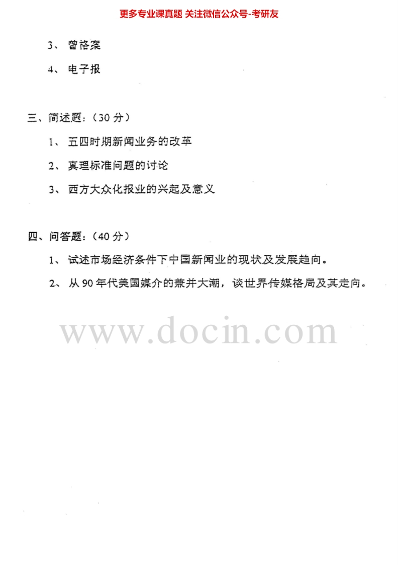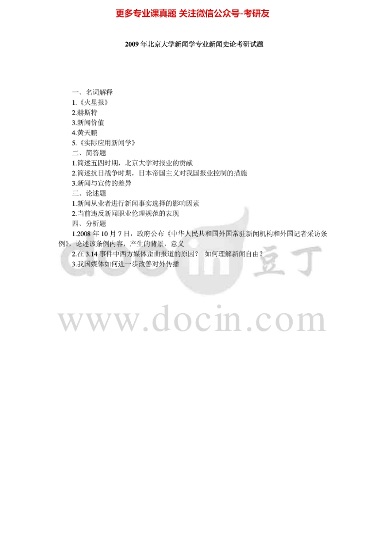 北京大学619新闻史论2002、(回忆版)2009考研真题汇编猴哥6个月前发布关注私信0.45MB3页05623北京大学619新闻史论2002、(回忆版)2009考研真题汇编此内容为免费资源,请登录后查看¥0 登录查看免费资源 第1页 / 共3页 第2页 / 共3页 第3页 / 共3页 已完成全部阅读,共3页 © 版权声明文章版权归作者所有,未经允许请勿转载。THE END《北京大学》(619)比较文学与世界文学考研资料考研专业课 喜欢就支持一下吧点赞23赞赏 分享QQ空间微博QQ好友海报分享复制链接收藏