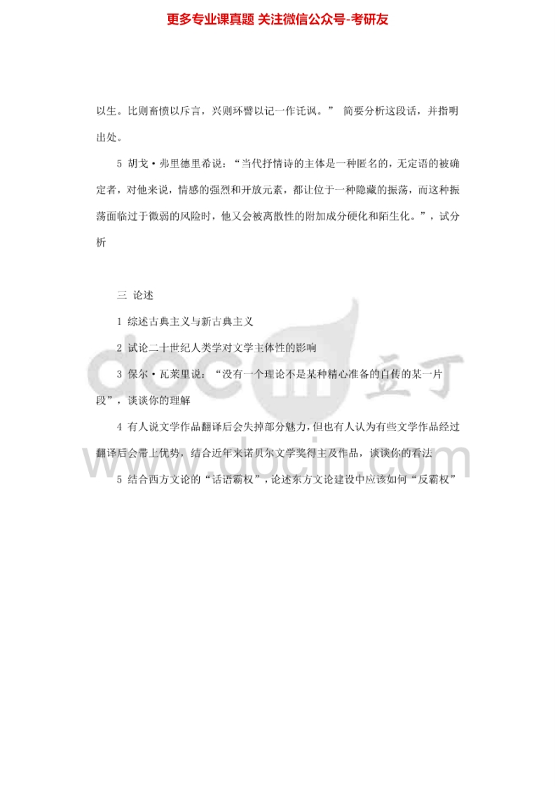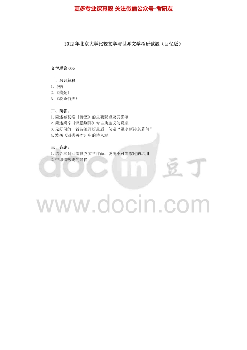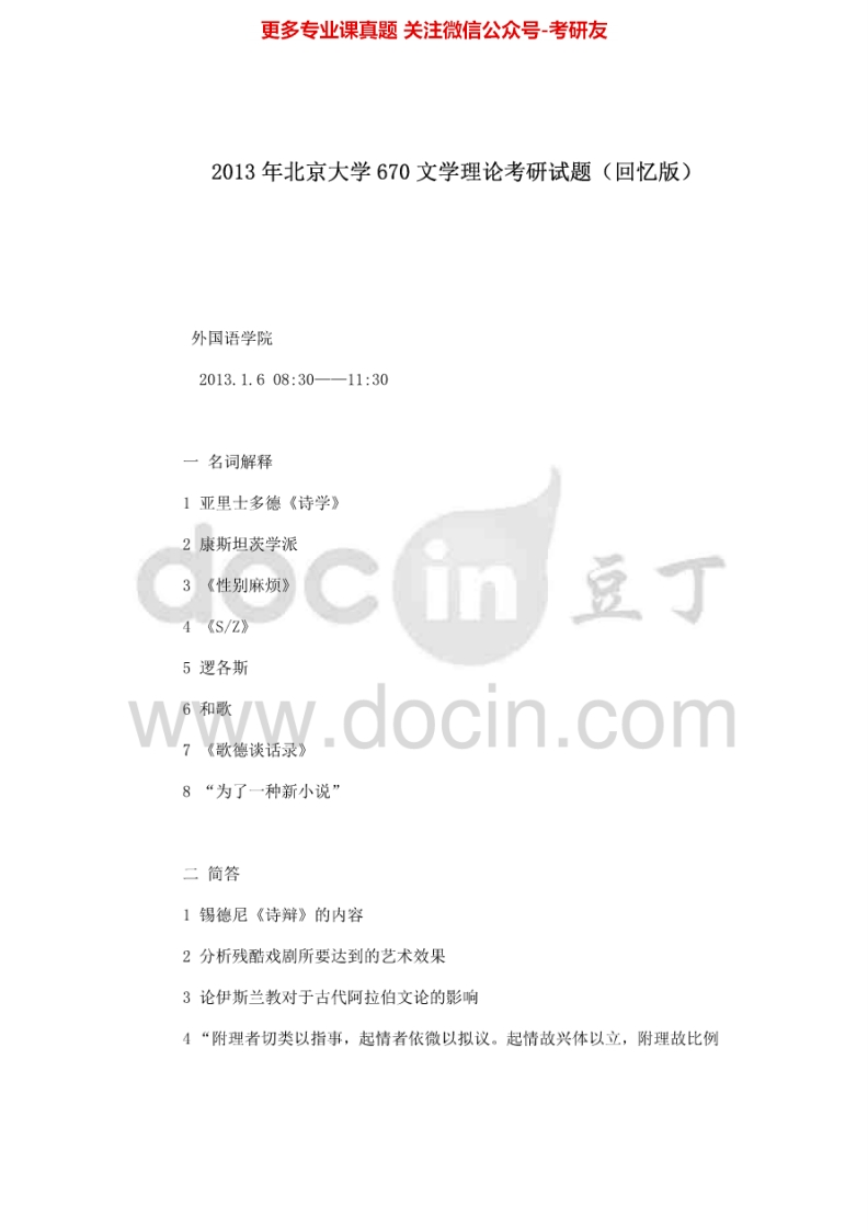 北京大学662文学理论(回忆版)2010-2013考研真题汇编猴哥6个月前发布关注私信0.17MB4页07035北京大学662文学理论(回忆版)2010-2013考研真题汇编此内容为免费资源,请登录后查看¥0 登录查看免费资源 第1页 / 共4页 第2页 / 共4页 第3页 / 共4页 第4页 / 共4页 已完成全部阅读,共4页 © 版权声明文章版权归作者所有,未经允许请勿转载。THE END考研专业课 喜欢就支持一下吧点赞35赞赏 分享QQ空间微博QQ好友海报分享复制链接收藏