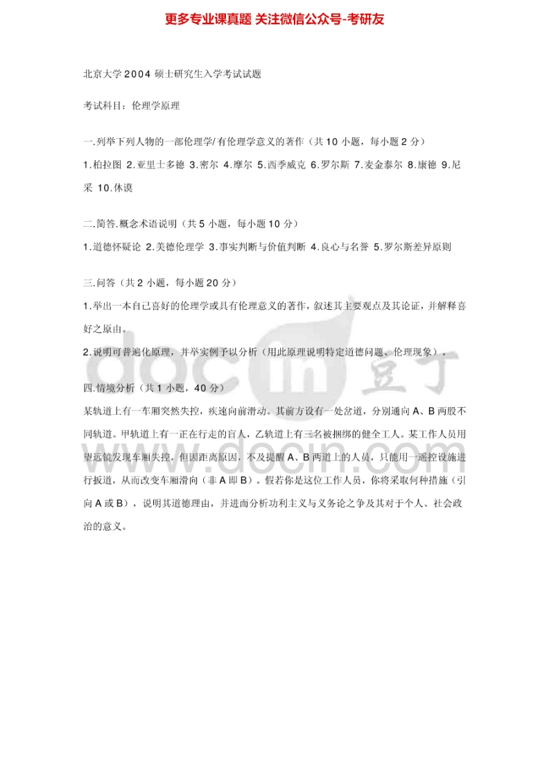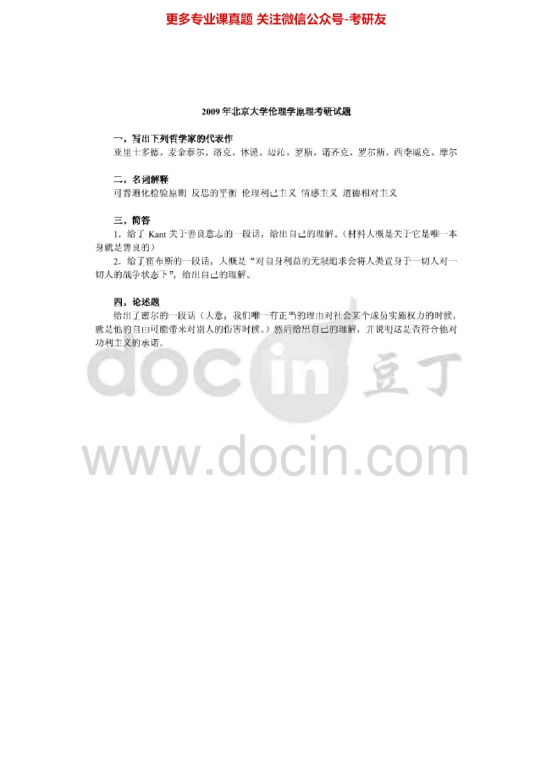 北京大学631伦理学原理2001、2004、2009-2010考研真题汇编猴哥6个月前发布关注私信0.19MB4页09466北京大学631伦理学原理2001、2004、2009-2010考研真题汇编此内容为免费资源,请登录后查看¥0 登录查看免费资源 第1页 / 共4页 第2页 / 共4页 第3页 / 共4页 第4页 / 共4页 已完成全部阅读,共4页 © 版权声明文章版权归作者所有,未经允许请勿转载。THE END《北京大学》(631)教育经济学综合考研资料考研专业课 喜欢就支持一下吧点赞66赞赏 分享QQ空间微博QQ好友海报分享复制链接收藏