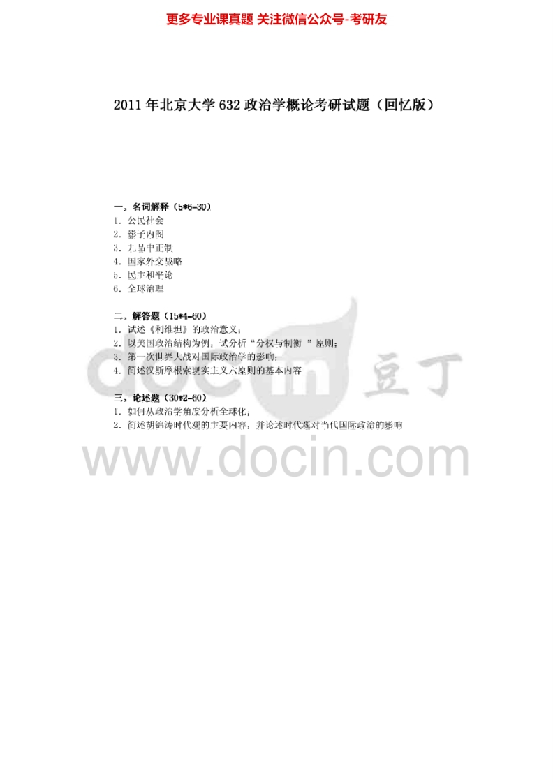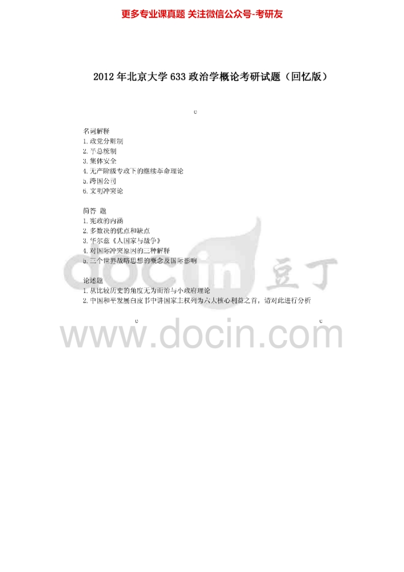 北京大学639政治学概论2008,(回忆版)2010-2013考研真题汇编猴哥6个月前发布关注私信0.37MB6页05629北京大学639政治学概论2008,(回忆版)2010-2013考研真题汇编此内容为免费资源,请登录后查看¥0 登录查看免费资源 第1页 / 共6页 第2页 / 共6页 第3页 / 共6页 第4页 / 共6页 第5页 / 共6页 该文档为免费文档,您可直接下载完整版进行阅读 © 版权声明文章版权归作者所有,未经允许请勿转载。THE END《北京大学》(639)社会文化人类学理论考研资料考研专业课 喜欢就支持一下吧点赞29赞赏 分享QQ空间微博QQ好友海报分享复制链接收藏