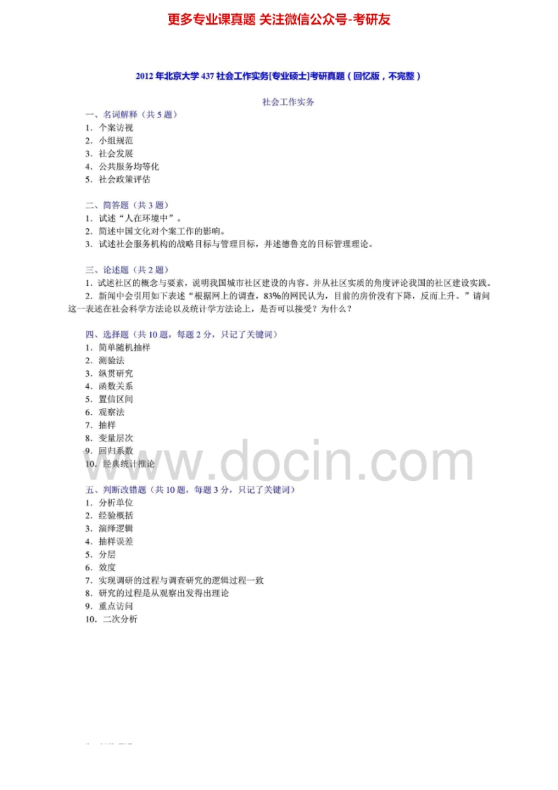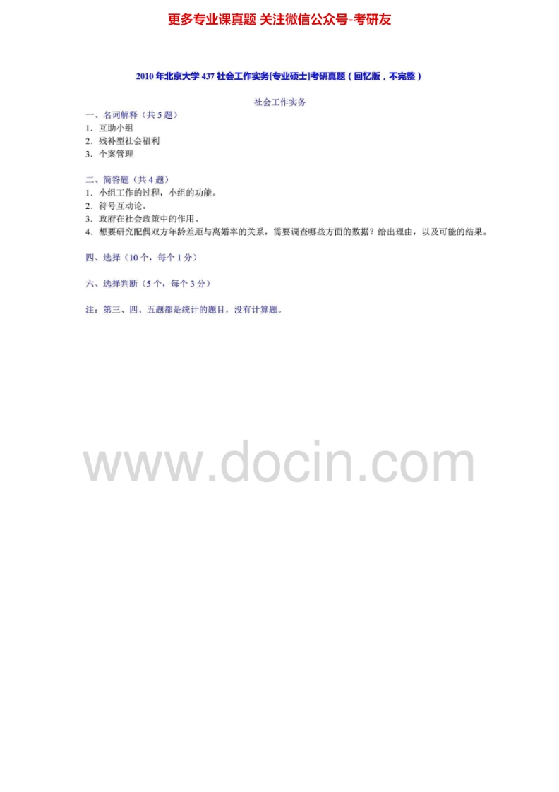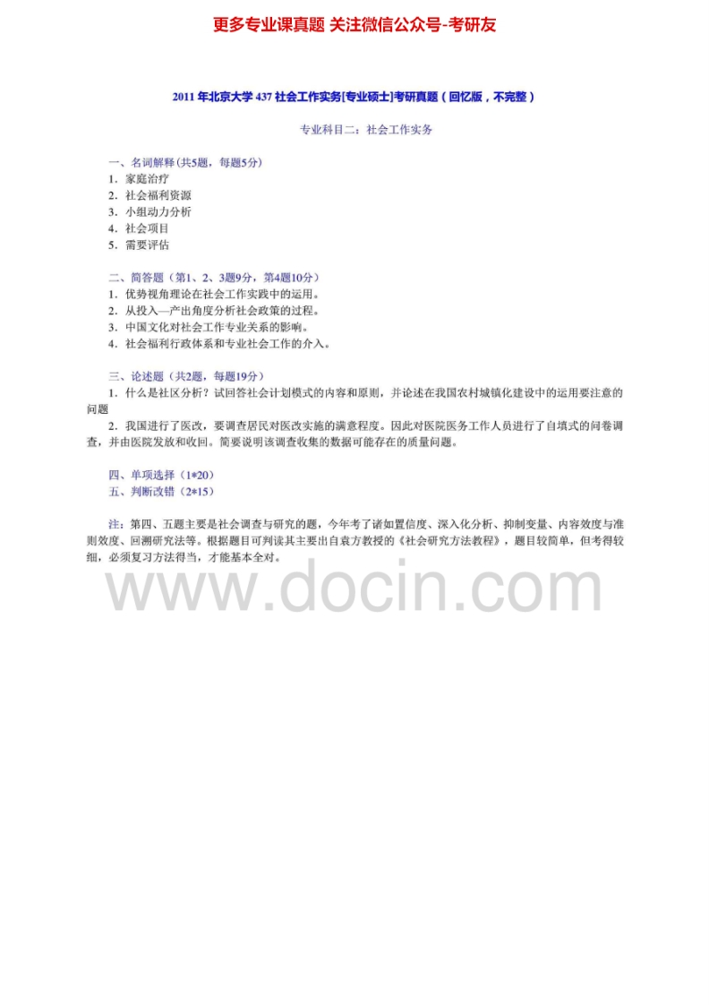 北京大学437社会工作实务2010-2013考研真题汇编猴哥6个月前发布关注私信0.52MB4页09332北京大学437社会工作实务2010-2013考研真题汇编此内容为免费资源,请登录后查看¥0 登录查看免费资源 第1页 / 共4页 第2页 / 共4页 第3页 / 共4页 第4页 / 共4页 已完成全部阅读,共4页 © 版权声明文章版权归作者所有,未经允许请勿转载。THE END《北京大学》(437)社会工作实务考研资料考研专业课 喜欢就支持一下吧点赞32赞赏 分享QQ空间微博QQ好友海报分享复制链接收藏