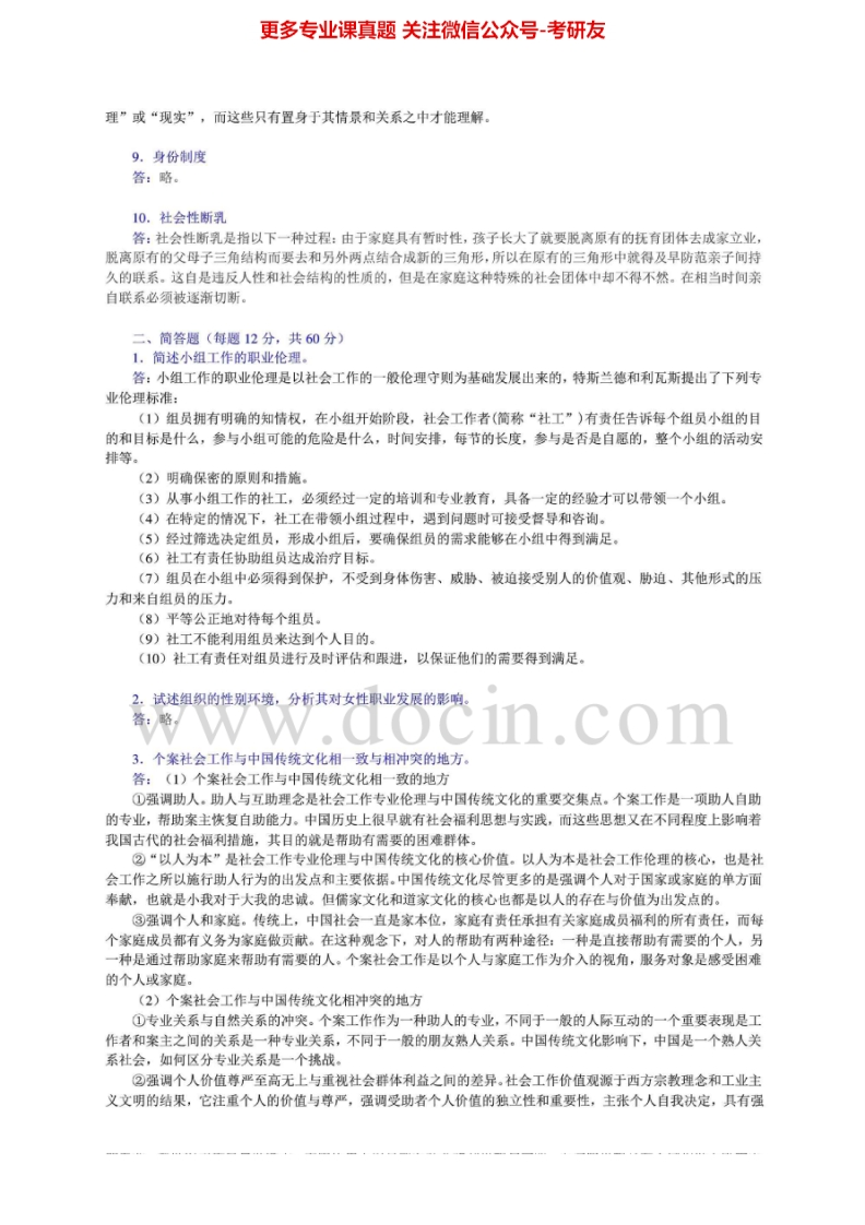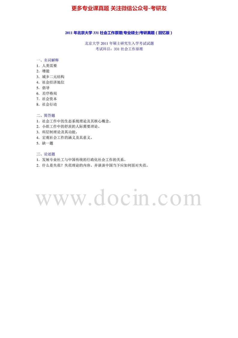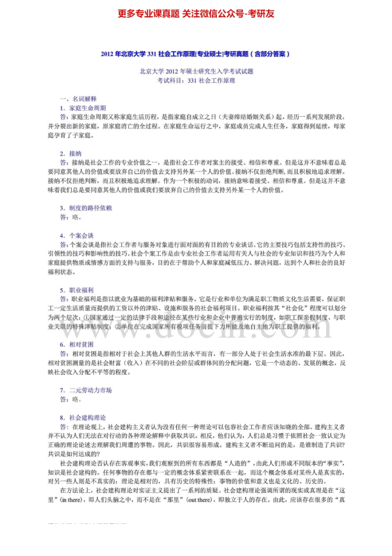 北京大学331社会工作原理2010-2012年真题及答案考研真题汇编猴哥6个月前发布关注私信5.08MB15页07146北京大学331社会工作原理2010-2012年真题及答案考研真题汇编此内容为免费资源,请登录后查看¥0 登录查看免费资源 第1页 / 共15页 第2页 / 共15页 第3页 / 共15页 第4页 / 共15页 第5页 / 共15页 该文档为免费文档,您可直接下载完整版进行阅读 © 版权声明文章版权归作者所有,未经允许请勿转载。THE END《北京大学》(331)社会工作原理考研资料考研专业课 喜欢就支持一下吧点赞46赞赏 分享QQ空间微博QQ好友海报分享复制链接收藏