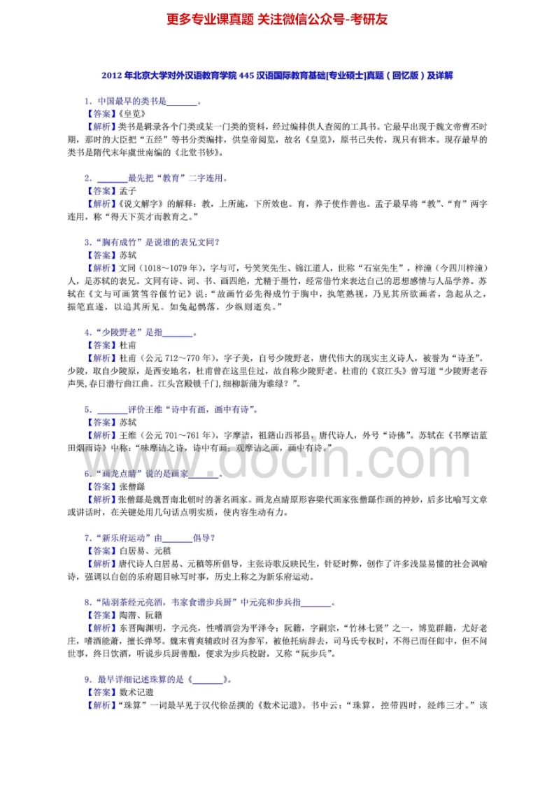 北京大学445汉语国际教育基础2010-2012年真题及答案考研真题汇编猴哥6个月前发布关注私信16.28MB55页03131北京大学445汉语国际教育基础2010-2012年真题及答案考研真题汇编此内容为免费资源,请登录后查看¥0 登录查看免费资源 第1页 / 共55页 第2页 / 共55页 第3页 / 共55页 第4页 / 共55页 第5页 / 共55页 该文档为免费文档,您可直接下载完整版进行阅读 © 版权声明文章版权归作者所有,未经允许请勿转载。THE END《北京大学》(445)汉语国际教育基础考研资料考研专业课 喜欢就支持一下吧点赞31赞赏 分享QQ空间微博QQ好友海报分享复制链接收藏