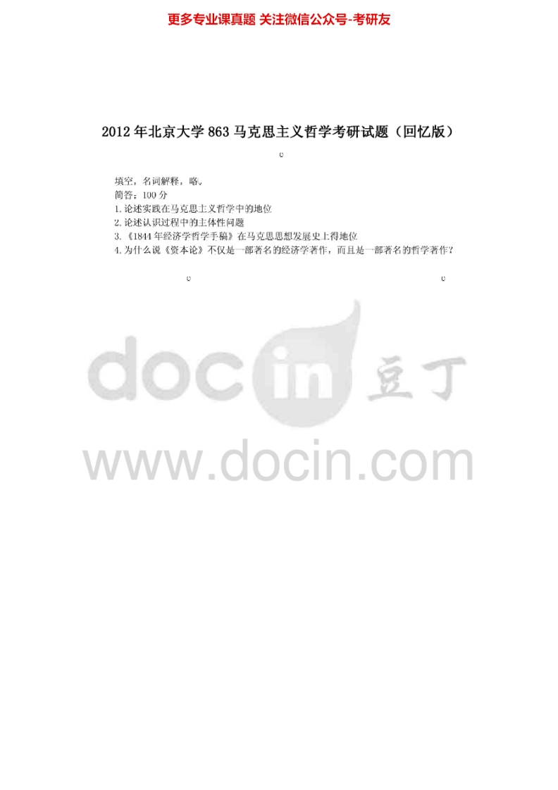 北京大学马克思主义基本原理中国化的马克思主义历年真题2001、2011-2012考研真题汇编猴哥6个月前发布关注私信0.12MB3页03441北京大学马克思主义基本原理中国化的马克思主义历年真题2001、2011-2012考研真题汇编此内容为免费资源,请登录后查看¥0 登录查看免费资源 第1页 / 共3页 第2页 / 共3页 第3页 / 共3页 已完成全部阅读,共3页 © 版权声明文章版权归作者所有,未经允许请勿转载。THE END考研专业课 喜欢就支持一下吧点赞41赞赏 分享QQ空间微博QQ好友海报分享复制链接收藏