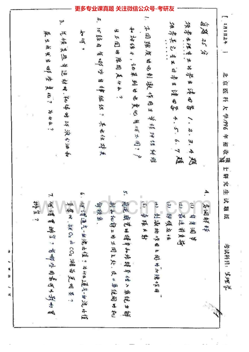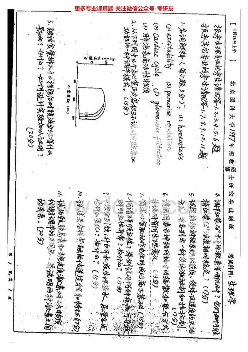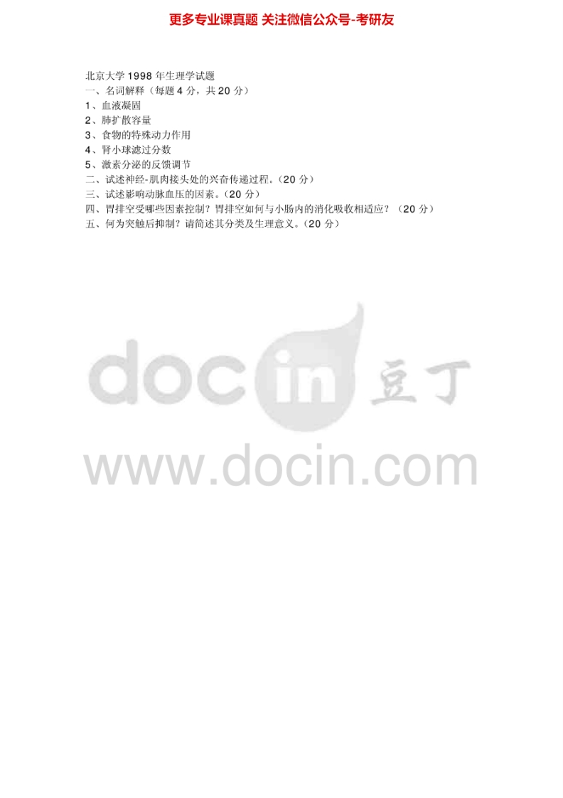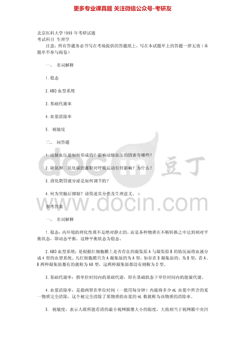 北京大学生理学历年真题1995-2000、2003-2004答案1999-2000考研真题汇编-学习资源网 - 分享优质学习资料