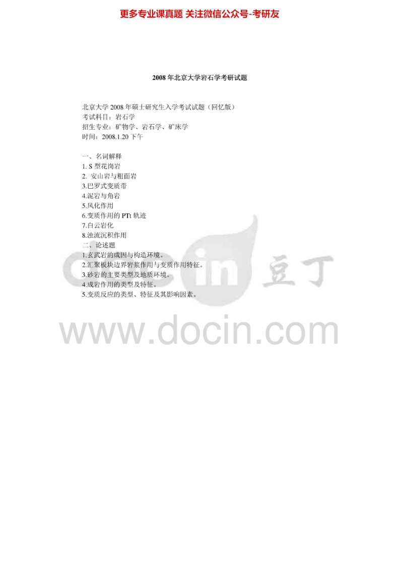 北京大学810岩石学2004-2008(回忆版)2012考研真题汇编猴哥6个月前发布关注私信0.91MB6页05238北京大学810岩石学2004-2008(回忆版)2012考研真题汇编此内容为免费资源,请登录后查看¥0 登录查看免费资源 第1页 / 共6页 第2页 / 共6页 第3页 / 共6页 第4页 / 共6页 第5页 / 共6页 该文档为免费文档,您可直接下载完整版进行阅读 © 版权声明文章版权归作者所有,未经允许请勿转载。THE END《北京大学》(810)地理信息系统考研资料考研专业课 喜欢就支持一下吧点赞38赞赏 分享QQ空间微博QQ好友海报分享复制链接收藏