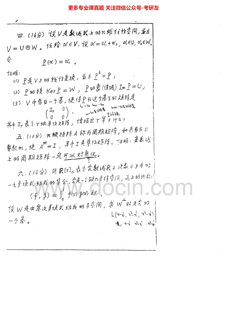 北京大学801数学基础考试2(高等代数、解析几何)1996-2002、2005、2007-2008其中2005、2007有答案考研真题汇编猴哥6个月前发布关注私信4.05MB32页08666北京大学801数学基础考试2(高等代数、解析几何)1996-2002、2005、2007-2008其中2005、2007有答案考研真题汇编此内容为免费资源,请登录后查看¥0 登录查看免费资源 第1页 / 共32页 第2页 / 共32页 第3页 / 共32页 第4页 / 共32页 第5页 / 共32页 该文档为免费文档,您可直接下载完整版进行阅读 © 版权声明文章版权归作者所有,未经允许请勿转载。THE END《北京大学》(801)经济学基础考研资料考研专业课 喜欢就支持一下吧点赞66赞赏 分享QQ空间微博QQ好友海报分享复制链接收藏