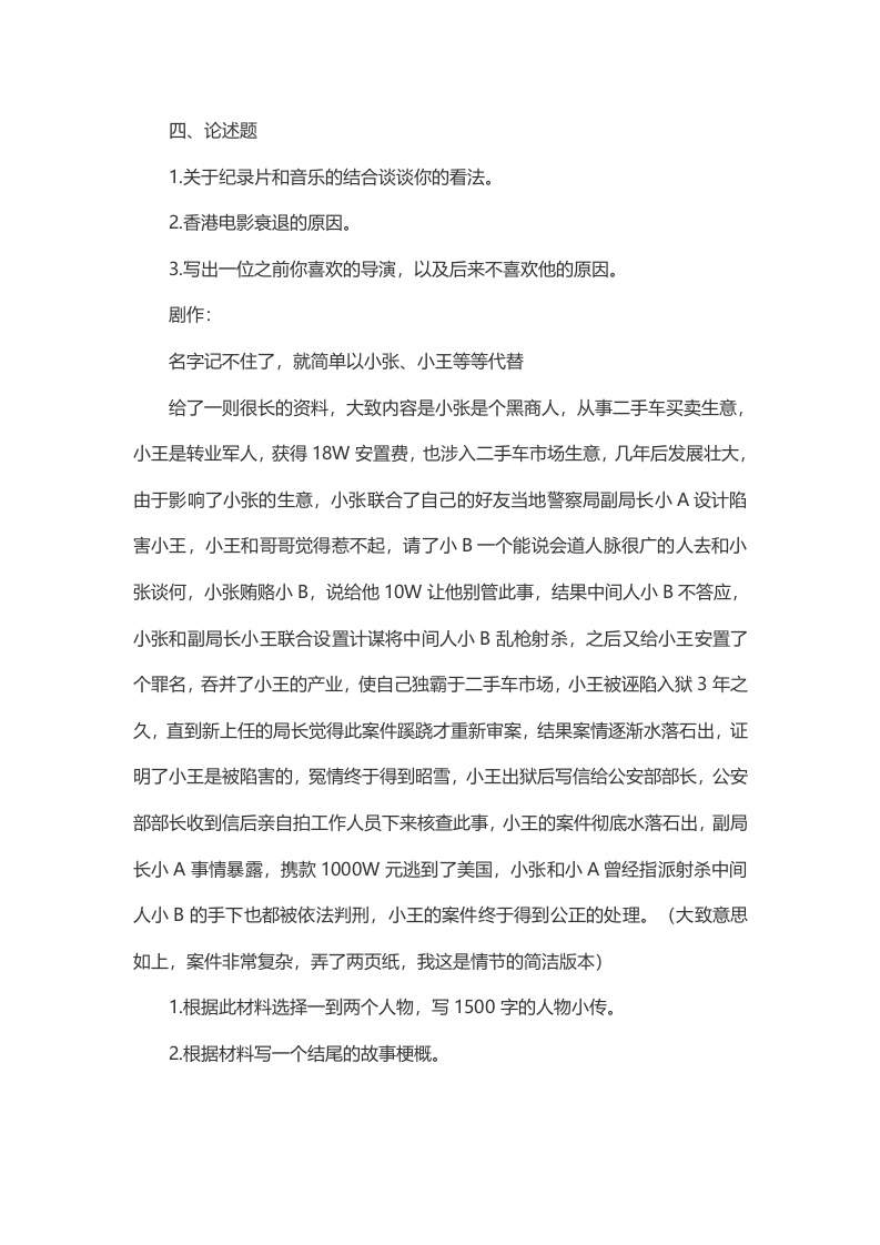 2014年考研北京电影学院导演系真题(回忆版)猴哥6个月前发布关注私信13.64KB3页071502014年考研北京电影学院导演系真题(回忆版)此内容为免费资源,请登录后查看¥0 登录查看免费资源 第1页 / 共3页 第2页 / 共3页 第3页 / 共3页 已完成全部阅读,共3页 © 版权声明文章版权归作者所有,未经允许请勿转载。THE END考研专业课 喜欢就支持一下吧点赞50赞赏 分享QQ空间微博QQ好友海报分享复制链接收藏