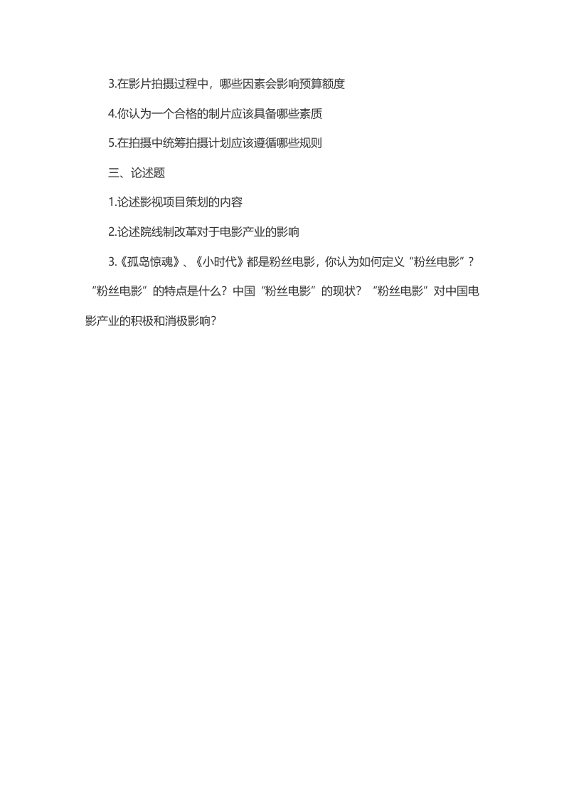 2014年考研北京电影学院管理系制片管理专业真题(回忆版)猴哥6个月前发布关注私信12.58KB2页078232014年考研北京电影学院管理系制片管理专业真题(回忆版)此内容为免费资源,请登录后查看¥0 登录查看免费资源 第1页 / 共2页 第2页 / 共2页 已完成全部阅读,共2页 © 版权声明文章版权归作者所有,未经允许请勿转载。THE END考研专业课 喜欢就支持一下吧点赞23赞赏 分享QQ空间微博QQ好友海报分享复制链接收藏