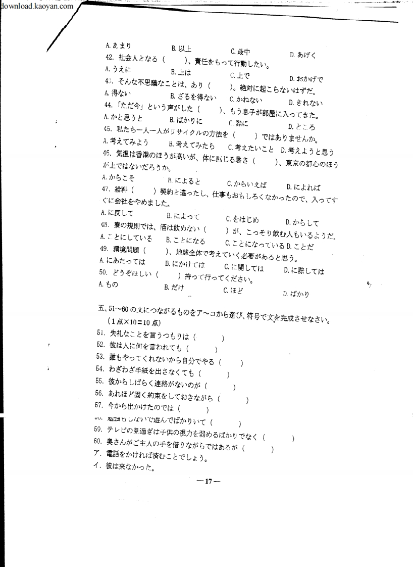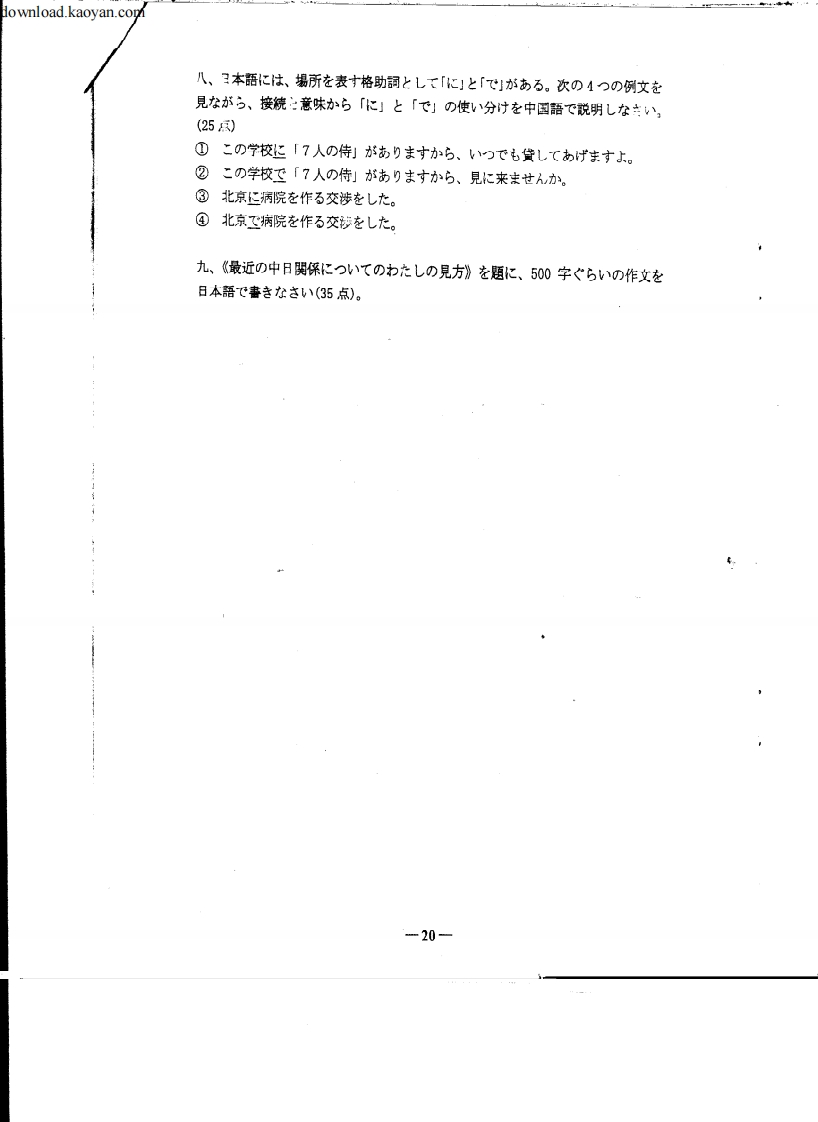 12006年北京第二外国语学院基础日本语考研试题猴哥6个月前发布关注私信0.41MB5页0813312006年北京第二外国语学院基础日本语考研试题此内容为免费资源,请登录后查看¥0 登录查看免费资源 第1页 / 共5页 第2页 / 共5页 第3页 / 共5页 第4页 / 共5页 第5页 / 共5页 已完成全部阅读,共5页 © 版权声明文章版权归作者所有,未经允许请勿转载。THE END考研专业课 喜欢就支持一下吧点赞33赞赏 分享QQ空间微博QQ好友海报分享复制链接收藏