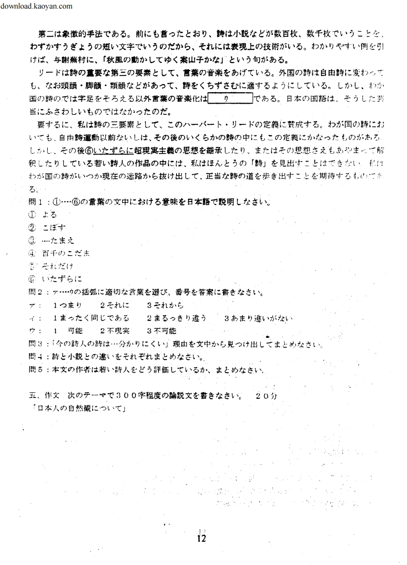 12002年北京第二外国语学院基础日语考研试题猴哥6个月前发布关注私信0.31MB4页0833512002年北京第二外国语学院基础日语考研试题此内容为免费资源,请登录后查看¥0 登录查看免费资源 第1页 / 共4页 第2页 / 共4页 第3页 / 共4页 第4页 / 共4页 已完成全部阅读,共4页 © 版权声明文章版权归作者所有,未经允许请勿转载。THE END考研专业课 喜欢就支持一下吧点赞35赞赏 分享QQ空间微博QQ好友海报分享复制链接收藏