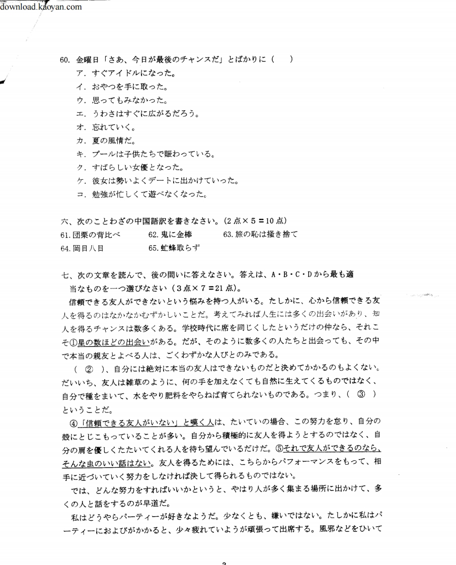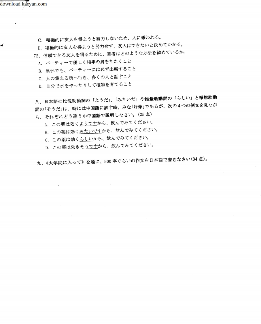 12004年北京第二外国语学院基础日本语考研试题猴哥6个月前发布关注私信3.71MB5页0345712004年北京第二外国语学院基础日本语考研试题此内容为免费资源,请登录后查看¥0 登录查看免费资源 第1页 / 共5页 第2页 / 共5页 第3页 / 共5页 第4页 / 共5页 第5页 / 共5页 已完成全部阅读,共5页 © 版权声明文章版权归作者所有,未经允许请勿转载。THE END考研专业课 喜欢就支持一下吧点赞57赞赏 分享QQ空间微博QQ好友海报分享复制链接收藏