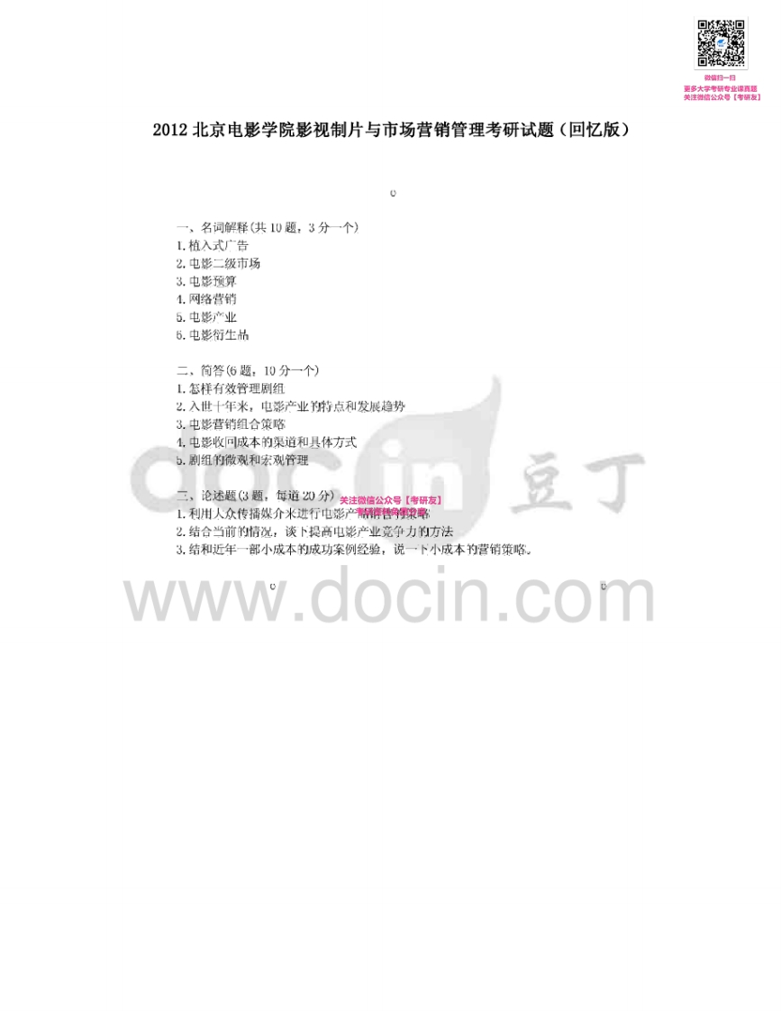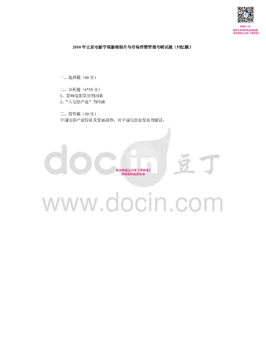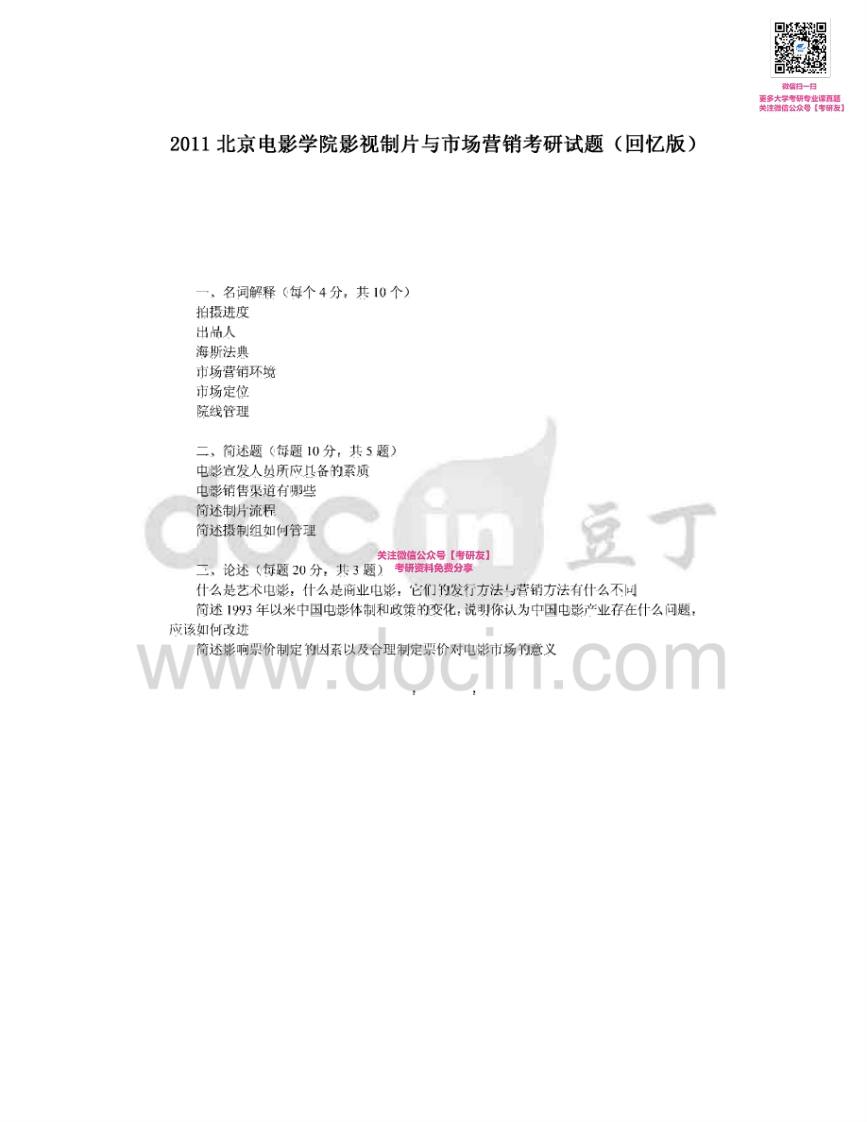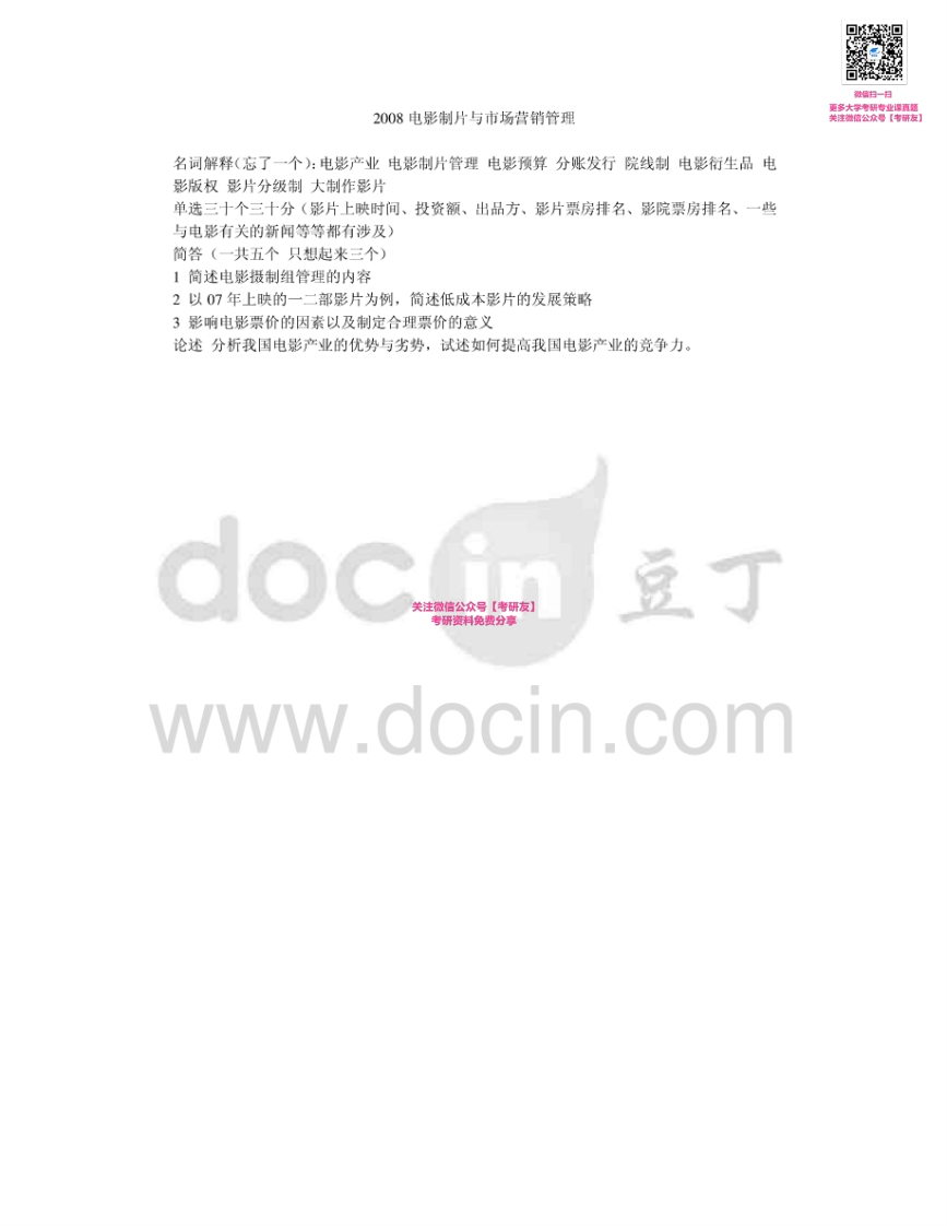 北京电影学院制片与市场2007-2008、2010-2013(其中2008、2010-2013回忆版)考研真题汇编微信公众号微研社免费分享猴哥6个月前发布关注私信0.29MB6页03161北京电影学院制片与市场2007-2008、2010-2013(其中2008、2010-2013回忆版)考研真题汇编微信公众号微研社免费分享此内容为免费资源,请登录后查看¥0 登录查看免费资源 第1页 / 共6页 第2页 / 共6页 第3页 / 共6页 第4页 / 共6页 第5页 / 共6页 该文档为免费文档,您可直接下载完整版进行阅读 © 版权声明文章版权归作者所有,未经允许请勿转载。THE END考研专业课 喜欢就支持一下吧点赞61赞赏 分享QQ空间微博QQ好友海报分享复制链接收藏