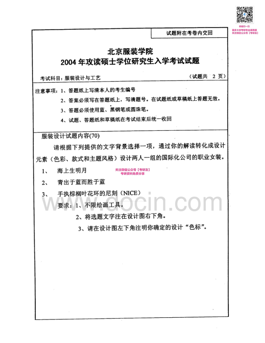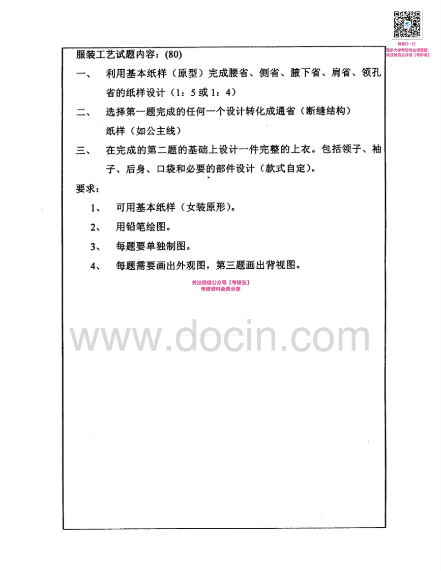 北京服装学院907服装设计与工艺2003-2008、2012考研真题汇编猴哥6个月前发布关注私信1.76MB9页04859北京服装学院907服装设计与工艺2003-2008、2012考研真题汇编此内容为免费资源,请登录后查看¥0 登录查看免费资源 第1页 / 共9页 第2页 / 共9页 第3页 / 共9页 第4页 / 共9页 第5页 / 共9页 该文档为免费文档,您可直接下载完整版进行阅读 © 版权声明文章版权归作者所有,未经允许请勿转载。THE END考研专业课 喜欢就支持一下吧点赞59赞赏 分享QQ空间微博QQ好友海报分享复制链接收藏