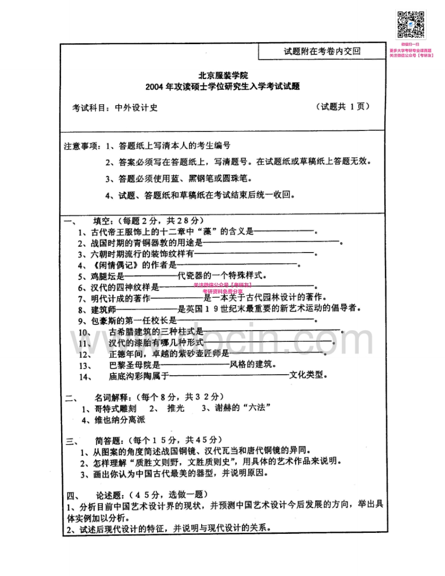 北京服装学院903中外设计史2003-2004考研真题汇编猴哥6个月前发布关注私信0.58MB2页08240北京服装学院903中外设计史2003-2004考研真题汇编此内容为免费资源,请登录后查看¥0 登录查看免费资源 第1页 / 共2页 第2页 / 共2页 已完成全部阅读,共2页 © 版权声明文章版权归作者所有,未经允许请勿转载。THE END考研专业课 喜欢就支持一下吧点赞40赞赏 分享QQ空间微博QQ好友海报分享复制链接收藏