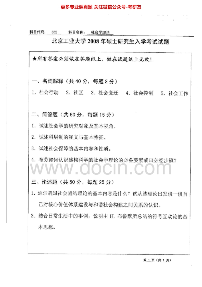 北京工业大学社会学理论2007-2014考研真题汇编猴哥6个月前发布关注私信1.71MB8页06066北京工业大学社会学理论2007-2014考研真题汇编此内容为免费资源,请登录后查看¥0 登录查看免费资源 第1页 / 共8页 第2页 / 共8页 第3页 / 共8页 第4页 / 共8页 第5页 / 共8页 该文档为免费文档,您可直接下载完整版进行阅读 © 版权声明文章版权归作者所有,未经允许请勿转载。THE END考研专业课 喜欢就支持一下吧点赞66赞赏 分享QQ空间微博QQ好友海报分享复制链接收藏