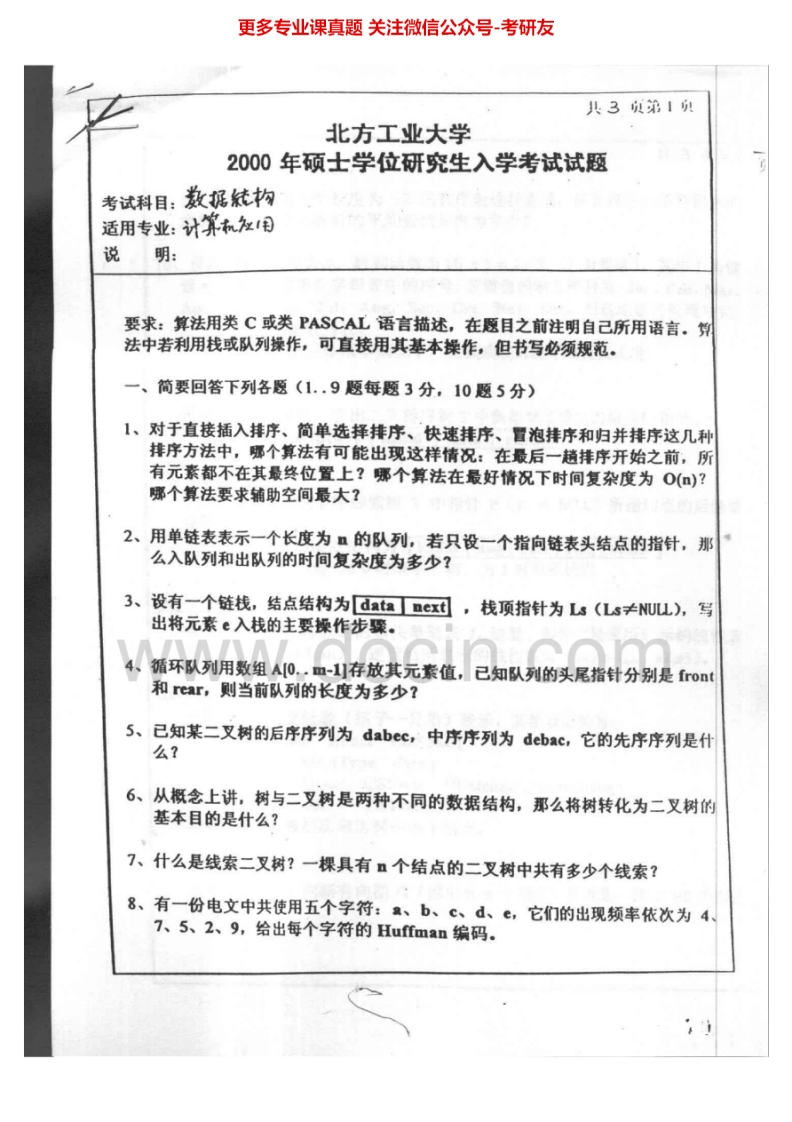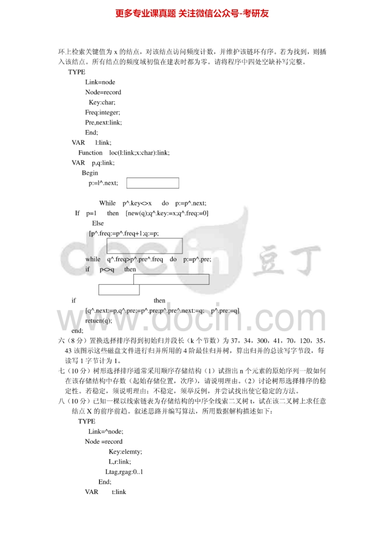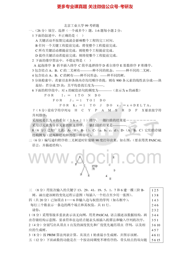 北京工业大学数据结构历年真题1998-2004考研真题汇编猴哥6个月前发布关注私信5.13MB20页09248北京工业大学数据结构历年真题1998-2004考研真题汇编此内容为免费资源,请登录后查看¥0 登录查看免费资源 第1页 / 共20页 第2页 / 共20页 第3页 / 共20页 第4页 / 共20页 第5页 / 共20页 该文档为免费文档,您可直接下载完整版进行阅读 © 版权声明文章版权归作者所有,未经允许请勿转载。THE END考研专业课 喜欢就支持一下吧点赞48赞赏 分享QQ空间微博QQ好友海报分享复制链接收藏