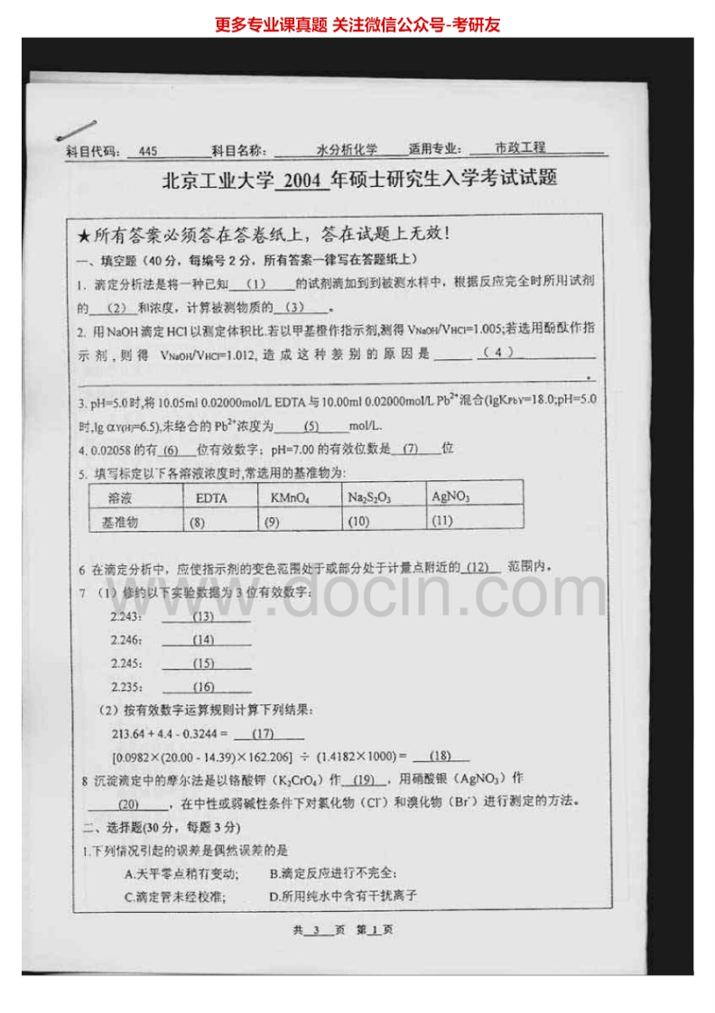 北京工业大学水分析化学2003-2006考研真题汇编猴哥6个月前发布关注私信7.75MB14页04929北京工业大学水分析化学2003-2006考研真题汇编此内容为免费资源,请登录后查看¥0 登录查看免费资源 第1页 / 共14页 第2页 / 共14页 第3页 / 共14页 第4页 / 共14页 第5页 / 共14页 该文档为免费文档,您可直接下载完整版进行阅读 © 版权声明文章版权归作者所有,未经允许请勿转载。THE END考研专业课 喜欢就支持一下吧点赞29赞赏 分享QQ空间微博QQ好友海报分享复制链接收藏