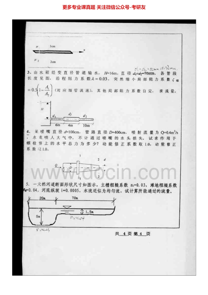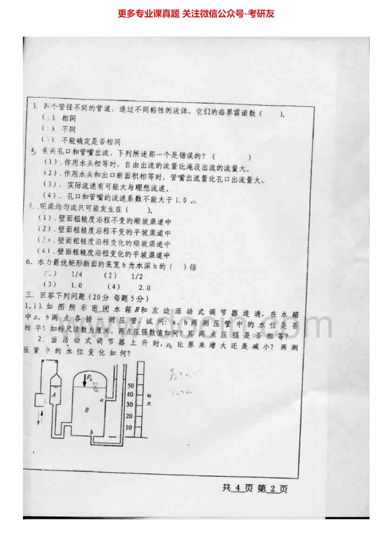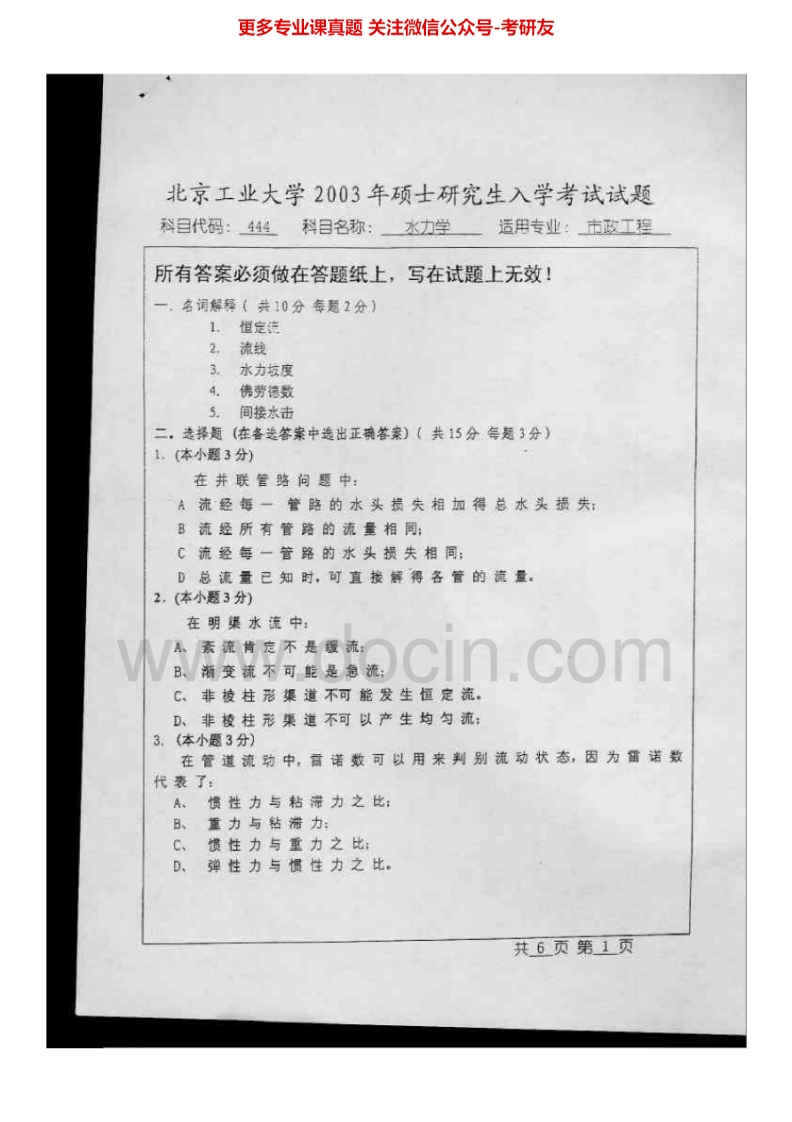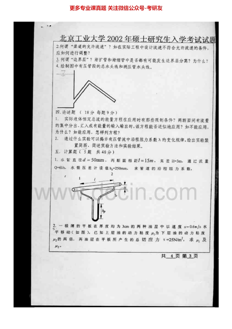 北京工业大学水力学I历年真题2002-2005、2008-2009考研真题汇编-学习资源网 - 分享优质学习资料
