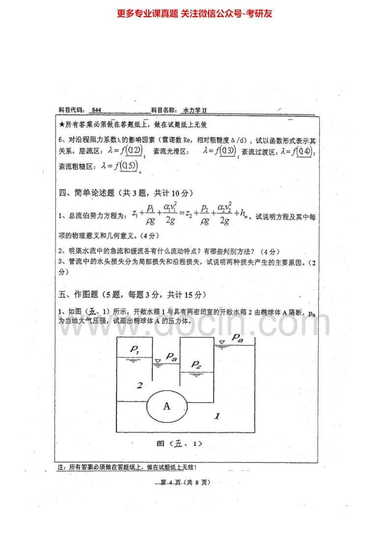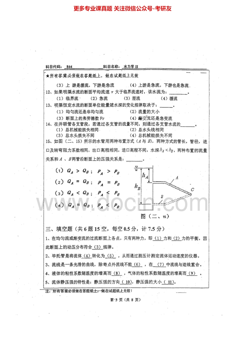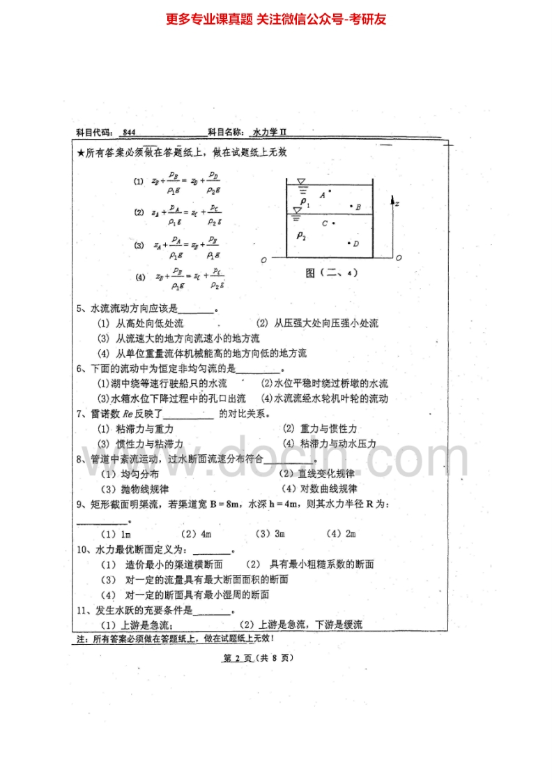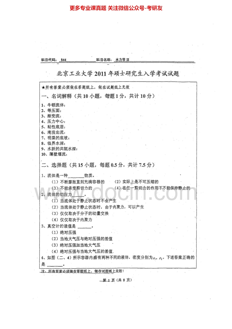 北京工业大学844水力学Ⅱ2011-2012、2014考研真题汇编-学习资源网 - 分享优质学习资料