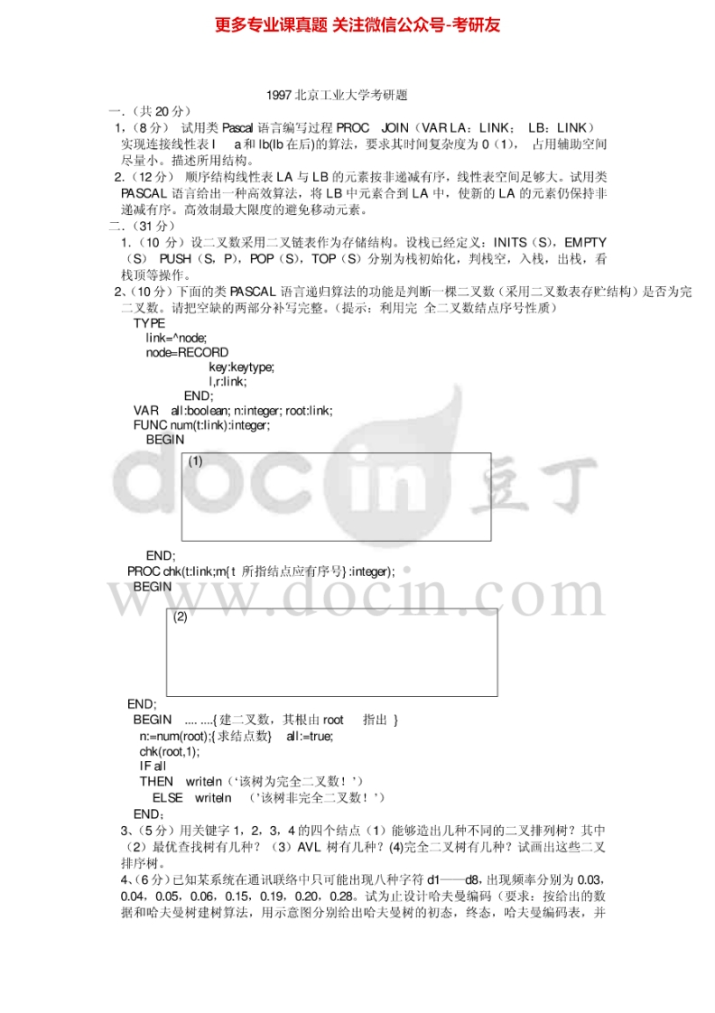 北京工业大学896数据结构1995-2004、2012考研真题汇编猴哥6个月前发布关注私信11.61MB33页08643北京工业大学896数据结构1995-2004、2012考研真题汇编此内容为免费资源,请登录后查看¥0 登录查看免费资源 第1页 / 共33页 第2页 / 共33页 第3页 / 共33页 第4页 / 共33页 第5页 / 共33页 该文档为免费文档,您可直接下载完整版进行阅读 © 版权声明文章版权归作者所有,未经允许请勿转载。THE END考研专业课 喜欢就支持一下吧点赞43赞赏 分享QQ空间微博QQ好友海报分享复制链接收藏