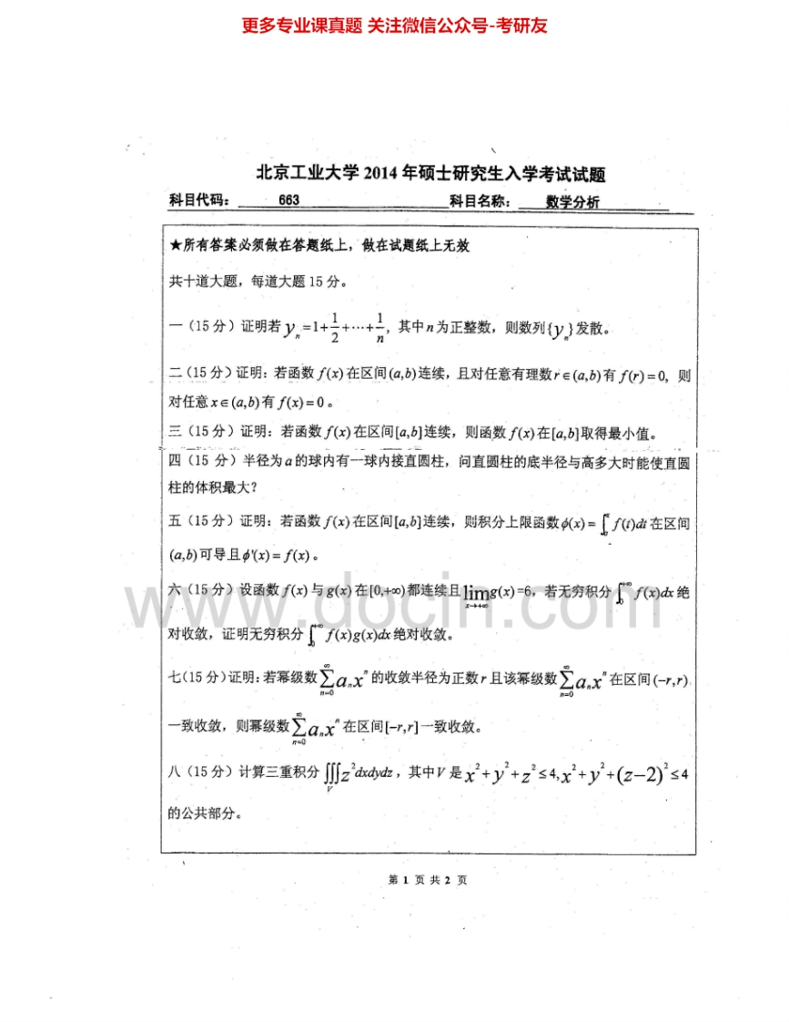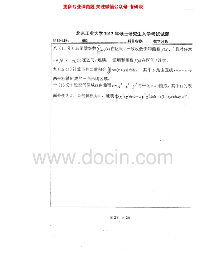 北京工业大学663数学分析2000-2015其中2009-2010有答案考研真题汇编猴哥6个月前发布关注私信7.47MB41页05618北京工业大学663数学分析2000-2015其中2009-2010有答案考研真题汇编此内容为免费资源,请登录后查看¥0 登录查看免费资源 第1页 / 共41页 第2页 / 共41页 第3页 / 共41页 第4页 / 共41页 第5页 / 共41页 该文档为免费文档,您可直接下载完整版进行阅读 © 版权声明文章版权归作者所有,未经允许请勿转载。THE END《北京工业大学》(663)数学分析考研资料考研专业课 喜欢就支持一下吧点赞18赞赏 分享QQ空间微博QQ好友海报分享复制链接收藏