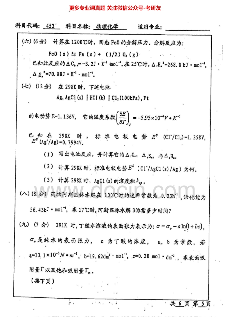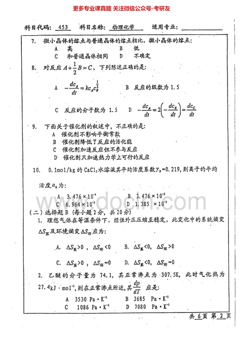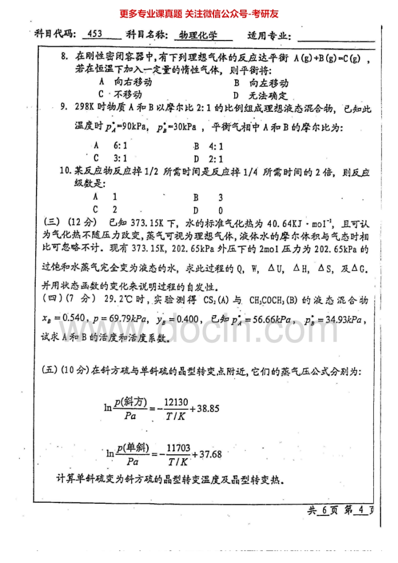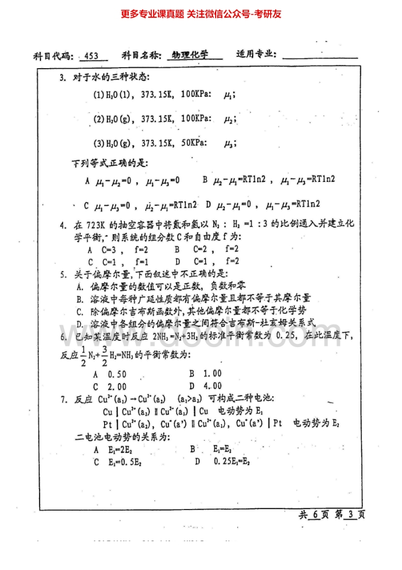 北京工业大学684物理化学I:物理化学2002-2005物理化学Ⅱ2006-2007考研真题汇编猴哥6个月前发布关注私信11.99MB26页04117北京工业大学684物理化学I:物理化学2002-2005物理化学Ⅱ2006-2007考研真题汇编此内容为免费资源,请登录后查看¥0 登录查看免费资源 第1页 / 共26页 第2页 / 共26页 第3页 / 共26页 第4页 / 共26页 第5页 / 共26页 该文档为免费文档,您可直接下载完整版进行阅读 © 版权声明文章版权归作者所有,未经允许请勿转载。THE END《北京工业大学》(684)物理化学Ⅰ考研资料考研专业课 喜欢就支持一下吧点赞17赞赏 分享QQ空间微博QQ好友海报分享复制链接收藏