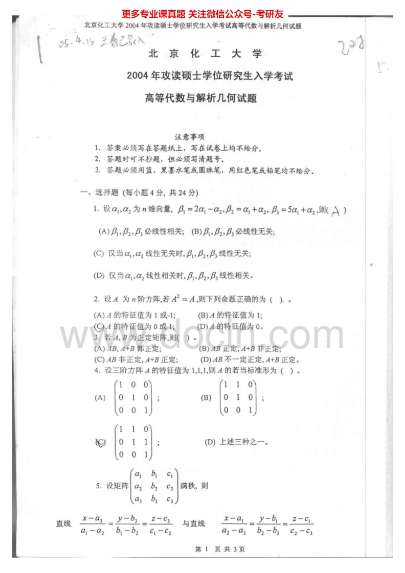 北京化工大学861高等代数与解析几何2002、2004-2008、2013-2015考研真题猴哥6个月前发布关注私信3.94MB26页03812北京化工大学861高等代数与解析几何2002、2004-2008、2013-2015考研真题此内容为免费资源,请登录后查看¥0 登录查看免费资源 第1页 / 共26页 第2页 / 共26页 第3页 / 共26页 第4页 / 共26页 第5页 / 共26页 该文档为免费文档,您可直接下载完整版进行阅读 © 版权声明文章版权归作者所有,未经允许请勿转载。THE END《北京化工大学》(861)高等代数与解析几何考研资料考研专业课 喜欢就支持一下吧点赞12赞赏 分享QQ空间微博QQ好友海报分享复制链接收藏