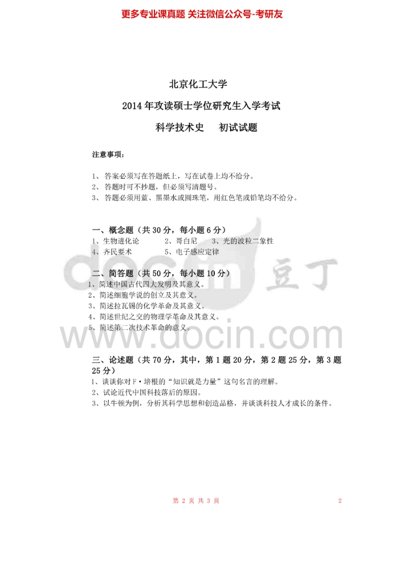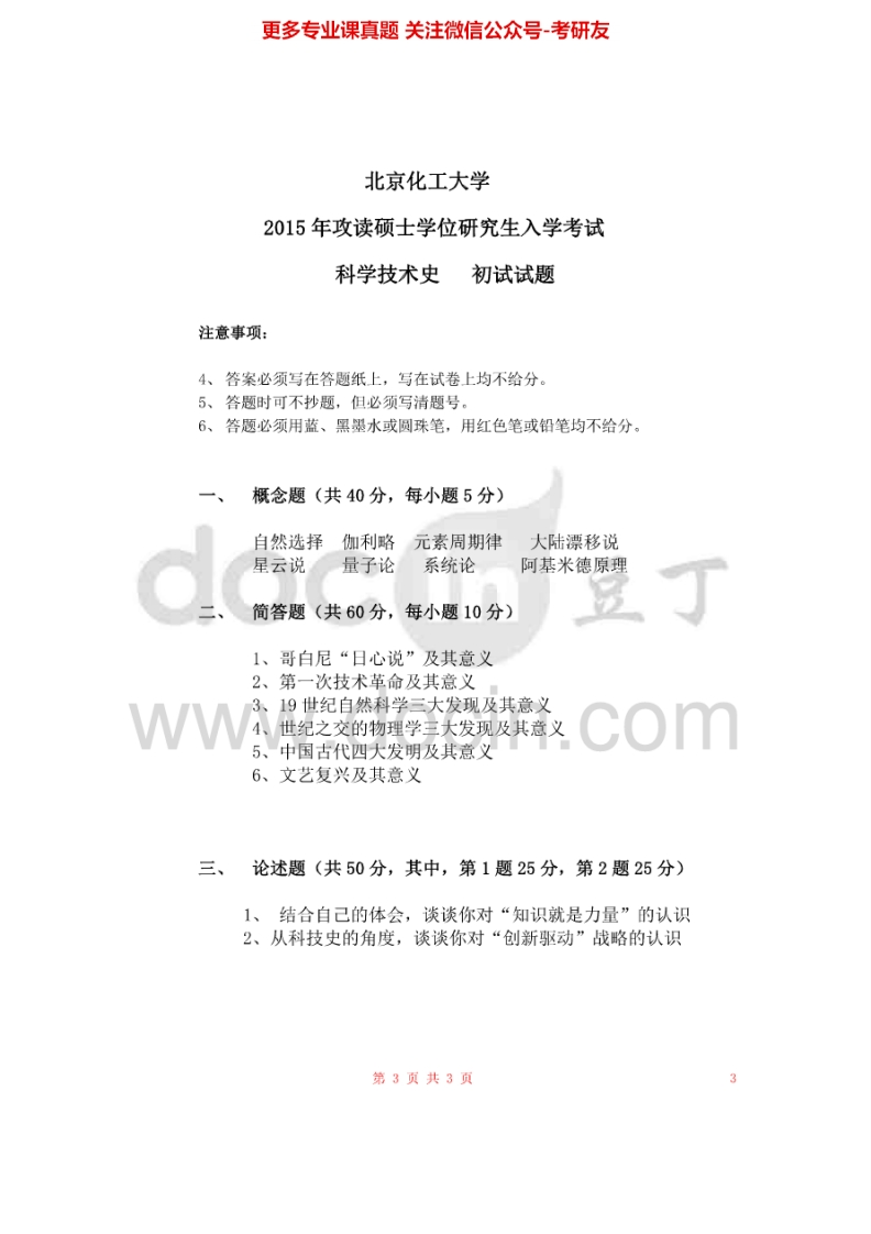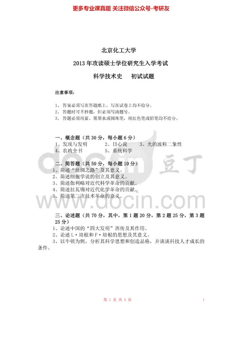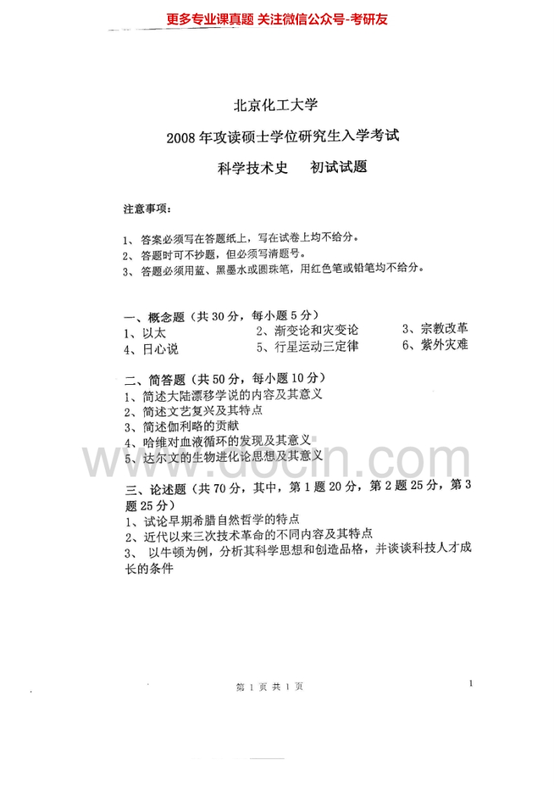 北京化工大学680科学技术史2007-2008、2013-2015考研真题-学习资源网 - 分享优质学习资料