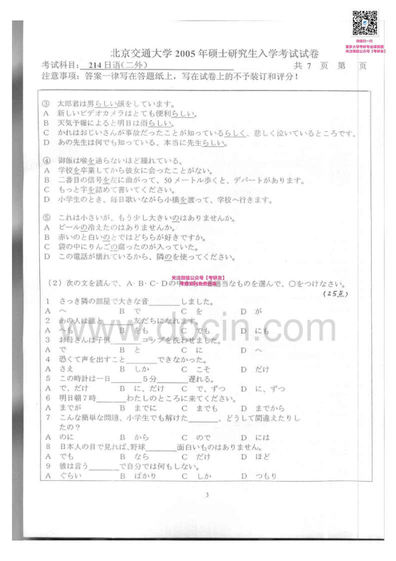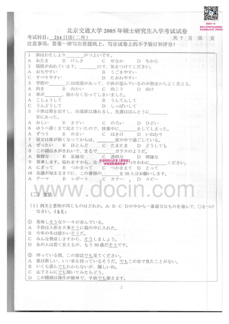 北京交通大学日语(二外)历年真题2005、2007考研真题汇编微信公众号微研社免费分享猴哥6个月前发布关注私信4.23MB14页03761北京交通大学日语(二外)历年真题2005、2007考研真题汇编微信公众号微研社免费分享此内容为免费资源,请登录后查看¥0 登录查看免费资源 第1页 / 共14页 第2页 / 共14页 第3页 / 共14页 第4页 / 共14页 第5页 / 共14页 该文档为免费文档,您可直接下载完整版进行阅读 © 版权声明文章版权归作者所有,未经允许请勿转载。THE END考研专业课 喜欢就支持一下吧点赞61赞赏 分享QQ空间微博QQ好友海报分享复制链接收藏
