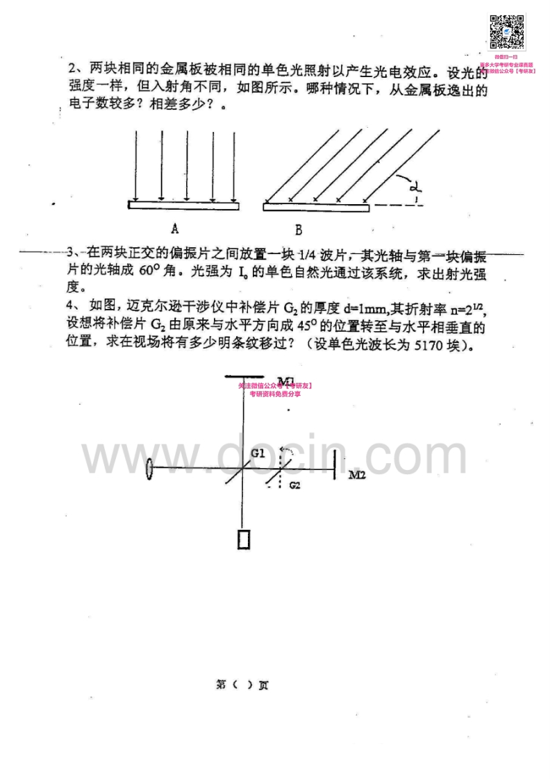 北京交通大学987物理光学1999、2001-2002、2006-2007考研真题汇编微信公众号微研社免费分享-学习资源网 - 分享优质学习资料