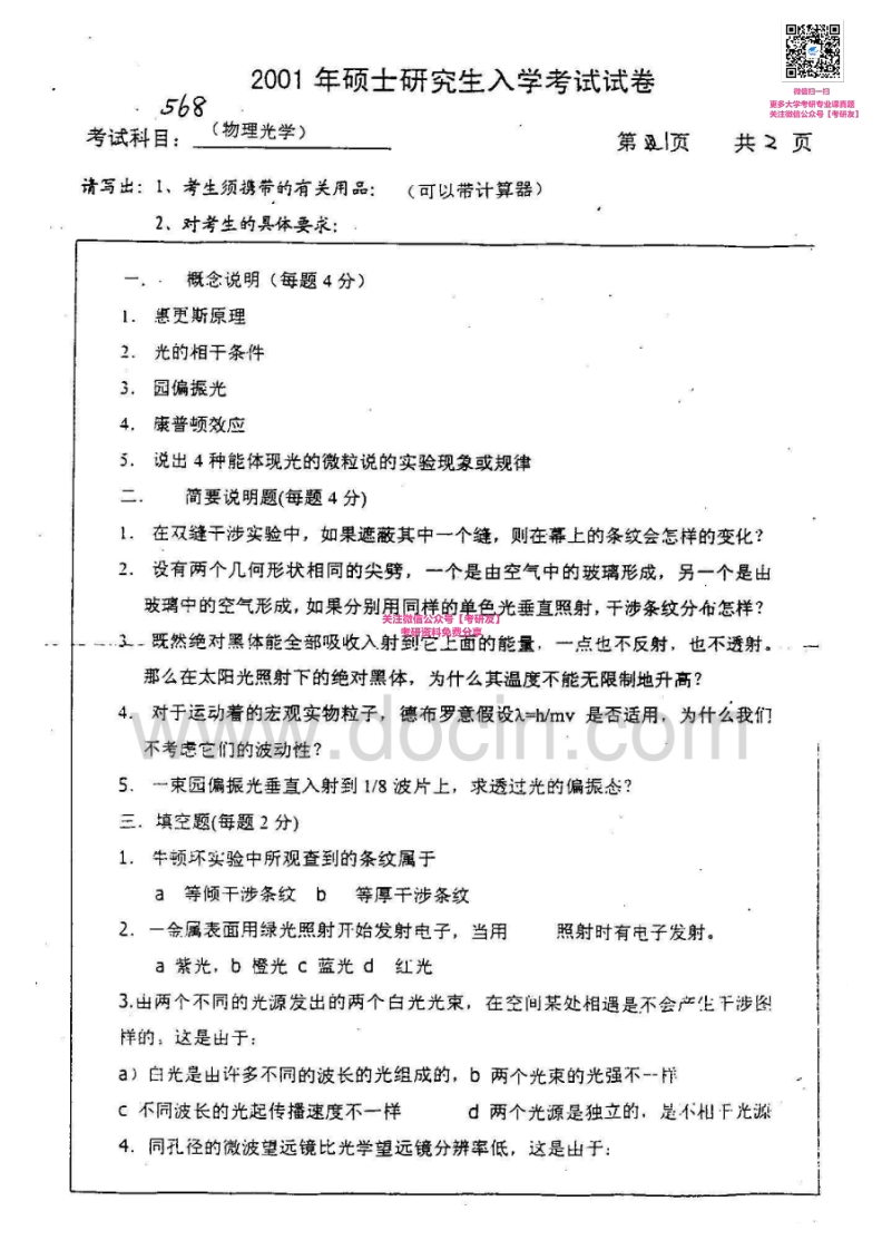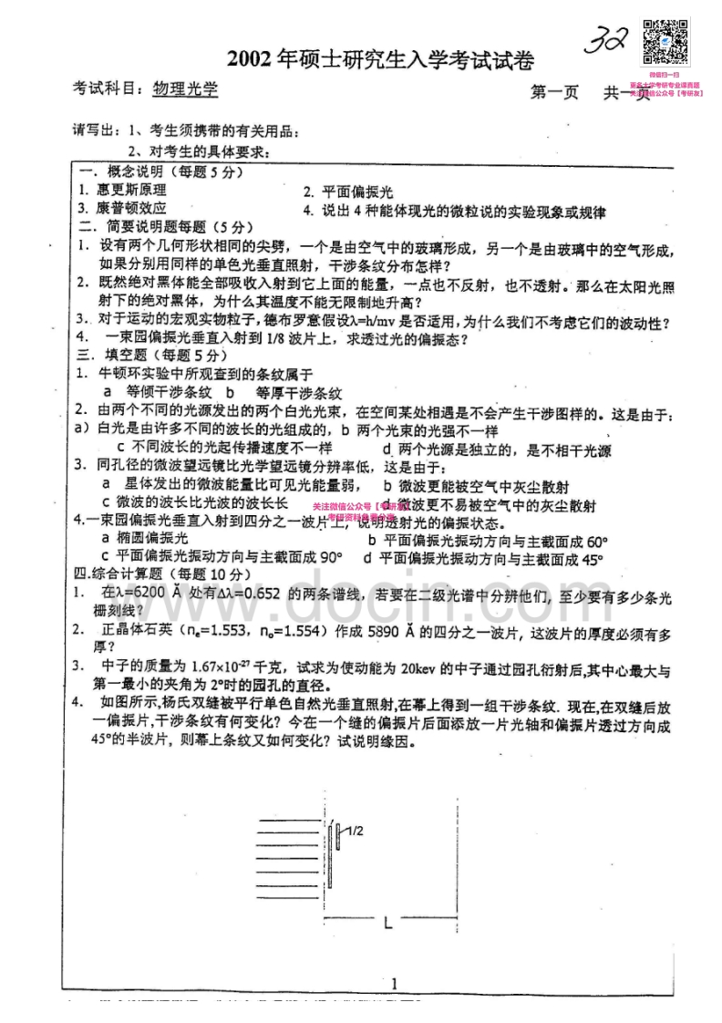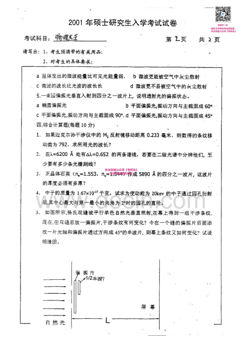 北京交通大学987物理光学1999、2001-2002、2006-2007考研真题汇编微信公众号微研社免费分享