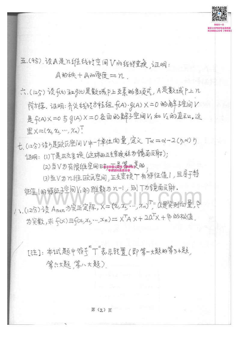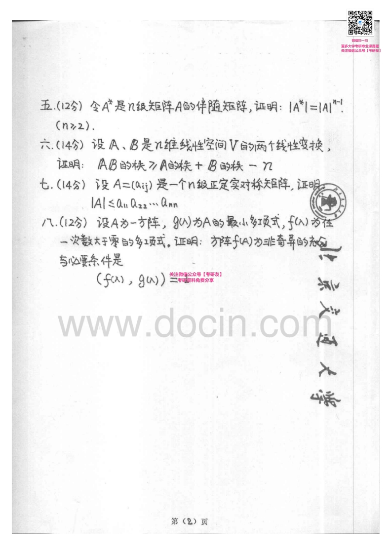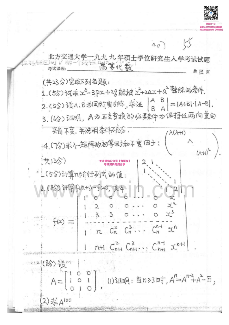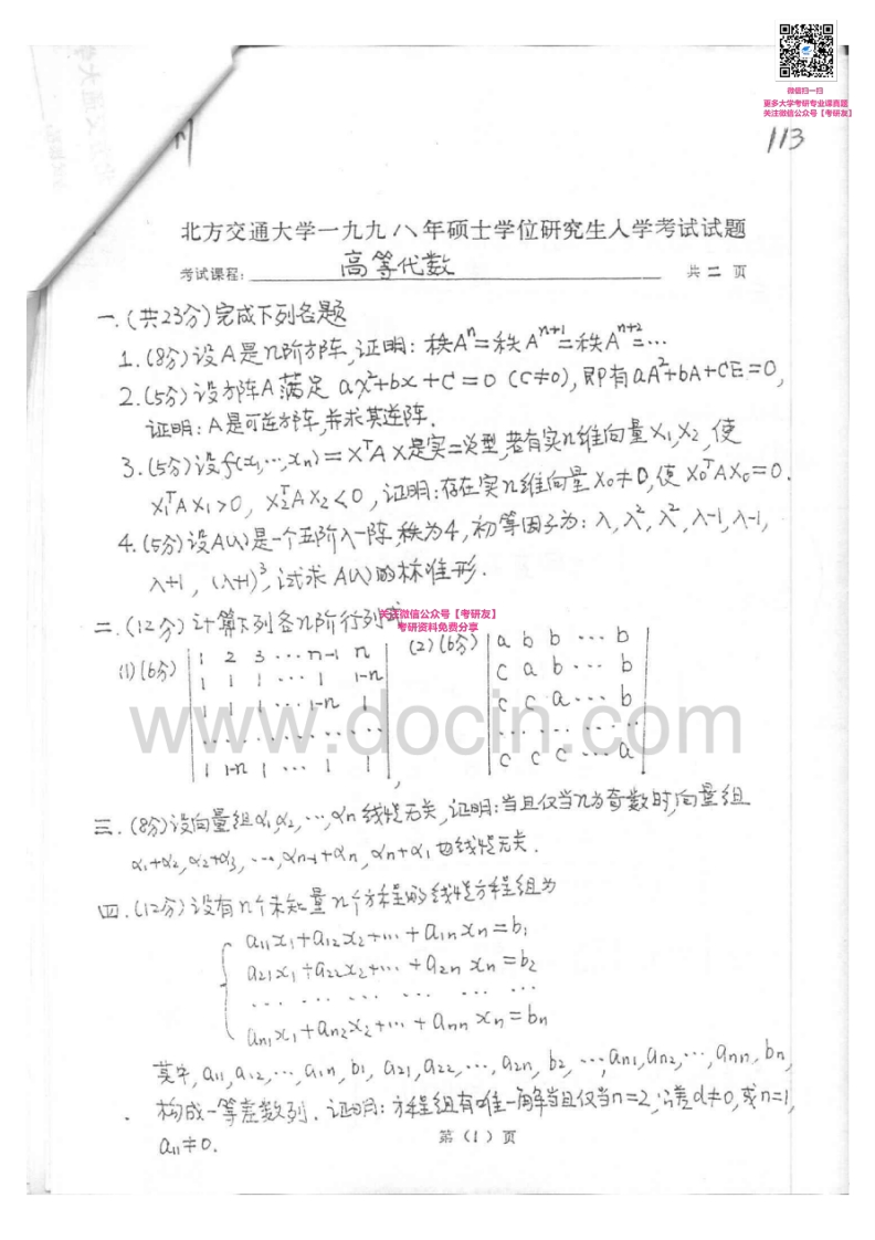 北京交通大学872高等代数1995、1998-2007考研真题汇编微信公众号微研社免费分享