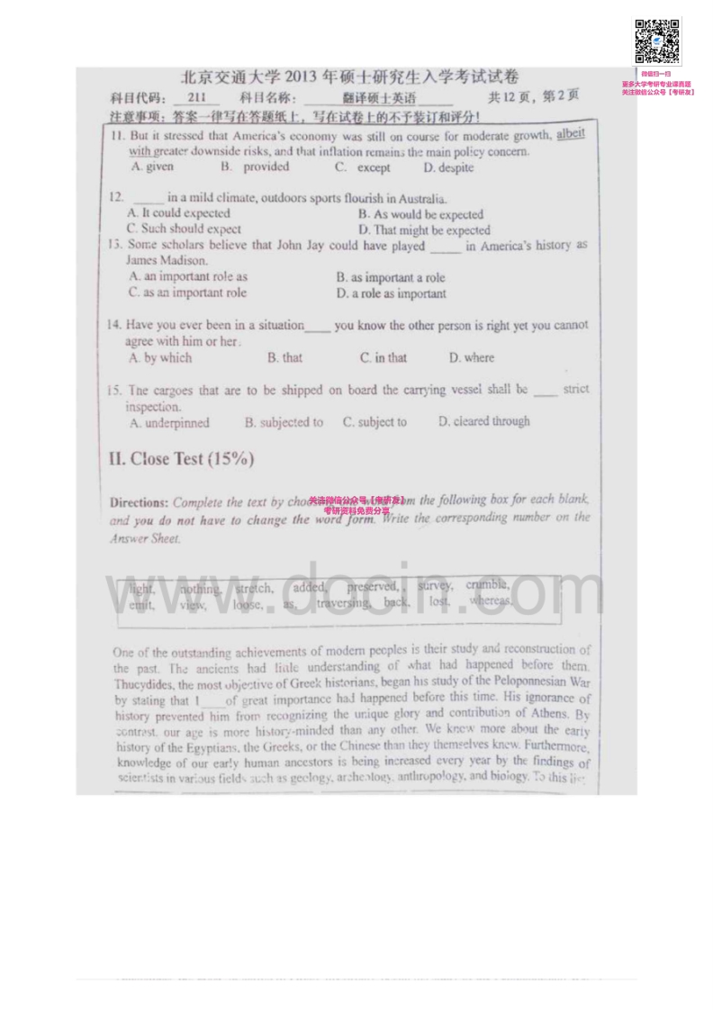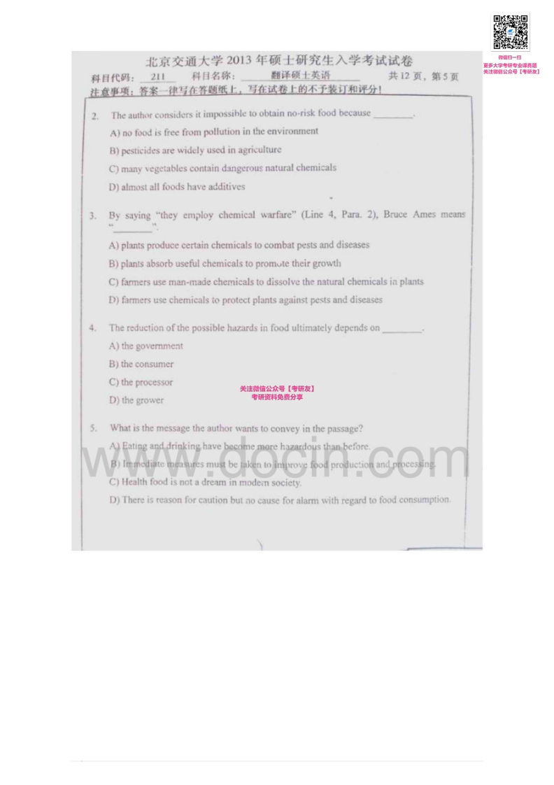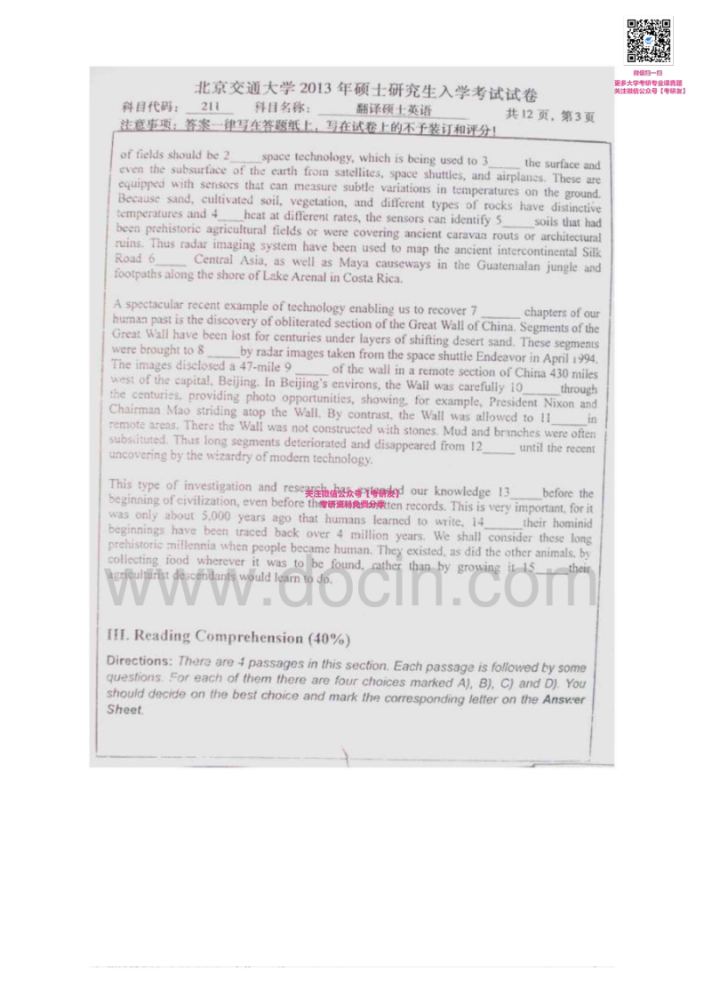 北京交通大学211翻译硕士英语2011-2013考研真题汇编微信公众号微研社免费分享猴哥6个月前发布关注私信10.04MB30页03261北京交通大学211翻译硕士英语2011-2013考研真题汇编微信公众号微研社免费分享此内容为免费资源,请登录后查看¥0 登录查看免费资源 第1页 / 共30页 第2页 / 共30页 第3页 / 共30页 第4页 / 共30页 第5页 / 共30页 该文档为免费文档,您可直接下载完整版进行阅读 © 版权声明文章版权归作者所有,未经允许请勿转载。THE END考研专业课 喜欢就支持一下吧点赞61赞赏 分享QQ空间微博QQ好友海报分享复制链接收藏
