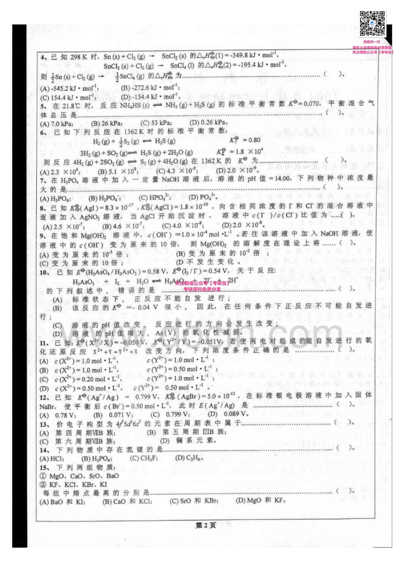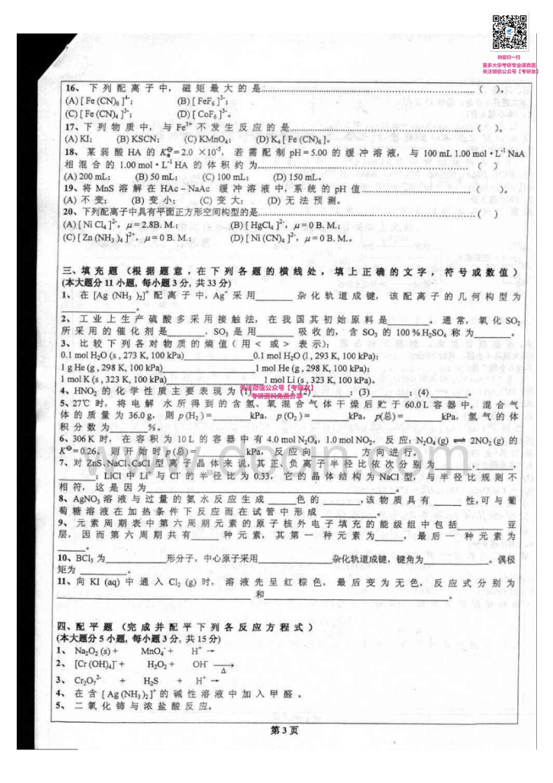 北京交通大学988无机化学2004-2005考研真题汇编微信公众号微研社免费分享猴哥6个月前发布关注私信5.76MB9页08824北京交通大学988无机化学2004-2005考研真题汇编微信公众号微研社免费分享此内容为免费资源,请登录后查看¥0 登录查看免费资源 第1页 / 共9页 第2页 / 共9页 第3页 / 共9页 第4页 / 共9页 第5页 / 共9页 该文档为免费文档,您可直接下载完整版进行阅读 © 版权声明文章版权归作者所有,未经允许请勿转载。THE END考研专业课 喜欢就支持一下吧点赞24赞赏 分享QQ空间微博QQ好友海报分享复制链接收藏