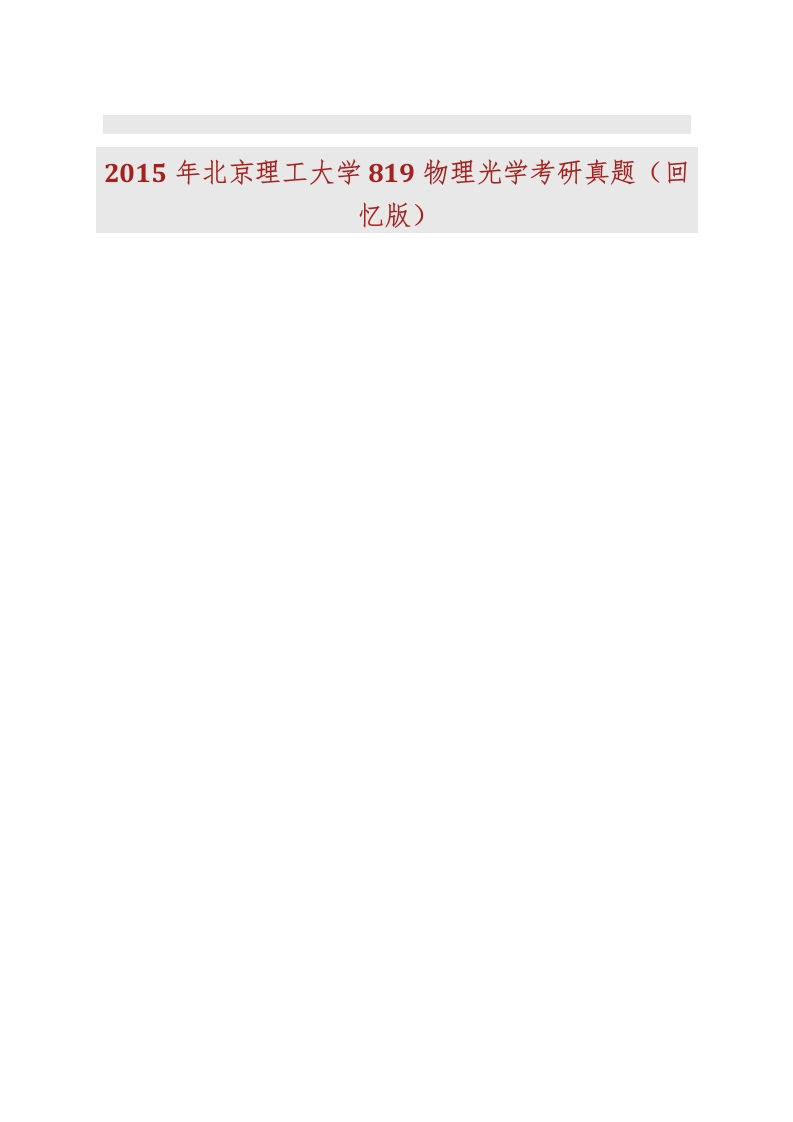 北京理工大学光电学院819物理光学历年考研真题汇编猴哥6个月前发布关注私信1.34MB35页05125北京理工大学光电学院819物理光学历年考研真题汇编此内容为免费资源,请登录后查看¥0 登录查看免费资源 第1页 / 共35页 第2页 / 共35页 第3页 / 共35页 第4页 / 共35页 第5页 / 共35页 该文档为免费文档,您可直接下载完整版进行阅读 © 版权声明文章版权归作者所有,未经允许请勿转载。THE END考研专业课 喜欢就支持一下吧点赞25赞赏 分享QQ空间微博QQ好友海报分享复制链接收藏