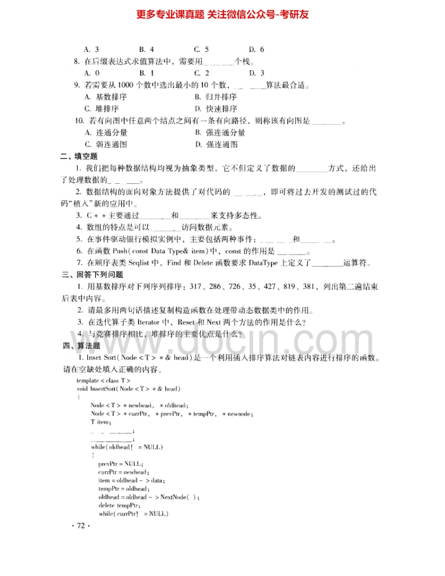 北京理工大学889数据结构2003-2004考研真题汇编猴哥6个月前发布关注私信3.63MB12页03060北京理工大学889数据结构2003-2004考研真题汇编此内容为免费资源,请登录后查看¥0 登录查看免费资源 第1页 / 共12页 第2页 / 共12页 第3页 / 共12页 第4页 / 共12页 第5页 / 共12页 该文档为免费文档,您可直接下载完整版进行阅读 © 版权声明文章版权归作者所有,未经允许请勿转载。THE END考研专业课 喜欢就支持一下吧点赞60赞赏 分享QQ空间微博QQ好友海报分享复制链接收藏