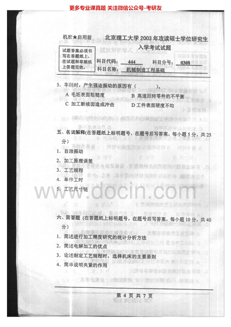北京理工大学机械制造工程基础历年真题2003-2008考研真题汇编猴哥6个月前发布关注私信14.57MB40页03025北京理工大学机械制造工程基础历年真题2003-2008考研真题汇编此内容为免费资源,请登录后查看¥0 登录查看免费资源 第1页 / 共40页 第2页 / 共40页 第3页 / 共40页 第4页 / 共40页 第5页 / 共40页 该文档为免费文档,您可直接下载完整版进行阅读 © 版权声明文章版权归作者所有,未经允许请勿转载。THE END考研专业课 喜欢就支持一下吧点赞25赞赏 分享QQ空间微博QQ好友海报分享复制链接收藏