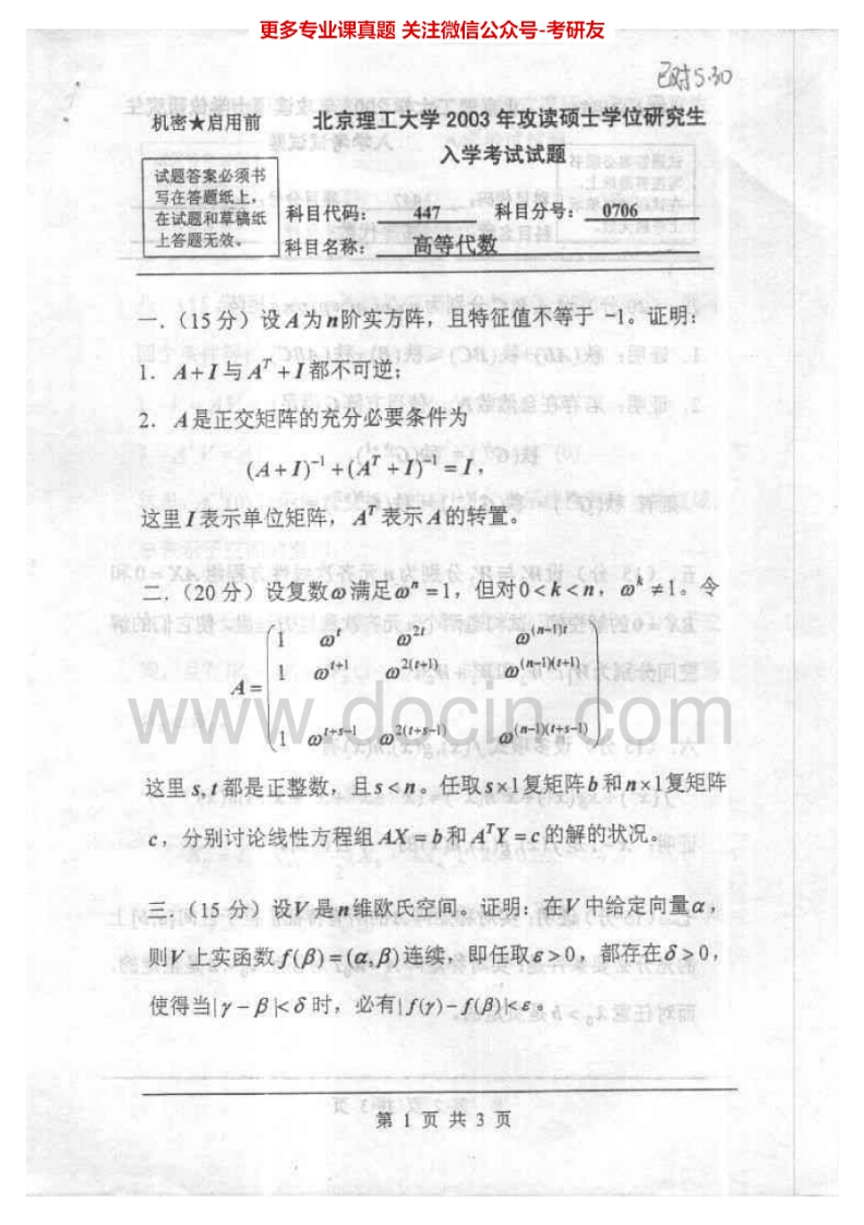 北京理工大学高等代数历年真题2000、2003-2008考研真题汇编.Image.Marked猴哥6个月前发布关注私信7.46MB21页09441北京理工大学高等代数历年真题2000、2003-2008考研真题汇编.Image.Marked此内容为免费资源,请登录后查看¥0 登录查看免费资源 第1页 / 共21页 第2页 / 共21页 第3页 / 共21页 第4页 / 共21页 第5页 / 共21页 该文档为免费文档,您可直接下载完整版进行阅读 © 版权声明文章版权归作者所有,未经允许请勿转载。THE END考研专业课 喜欢就支持一下吧点赞41赞赏 分享QQ空间微博QQ好友海报分享复制链接收藏